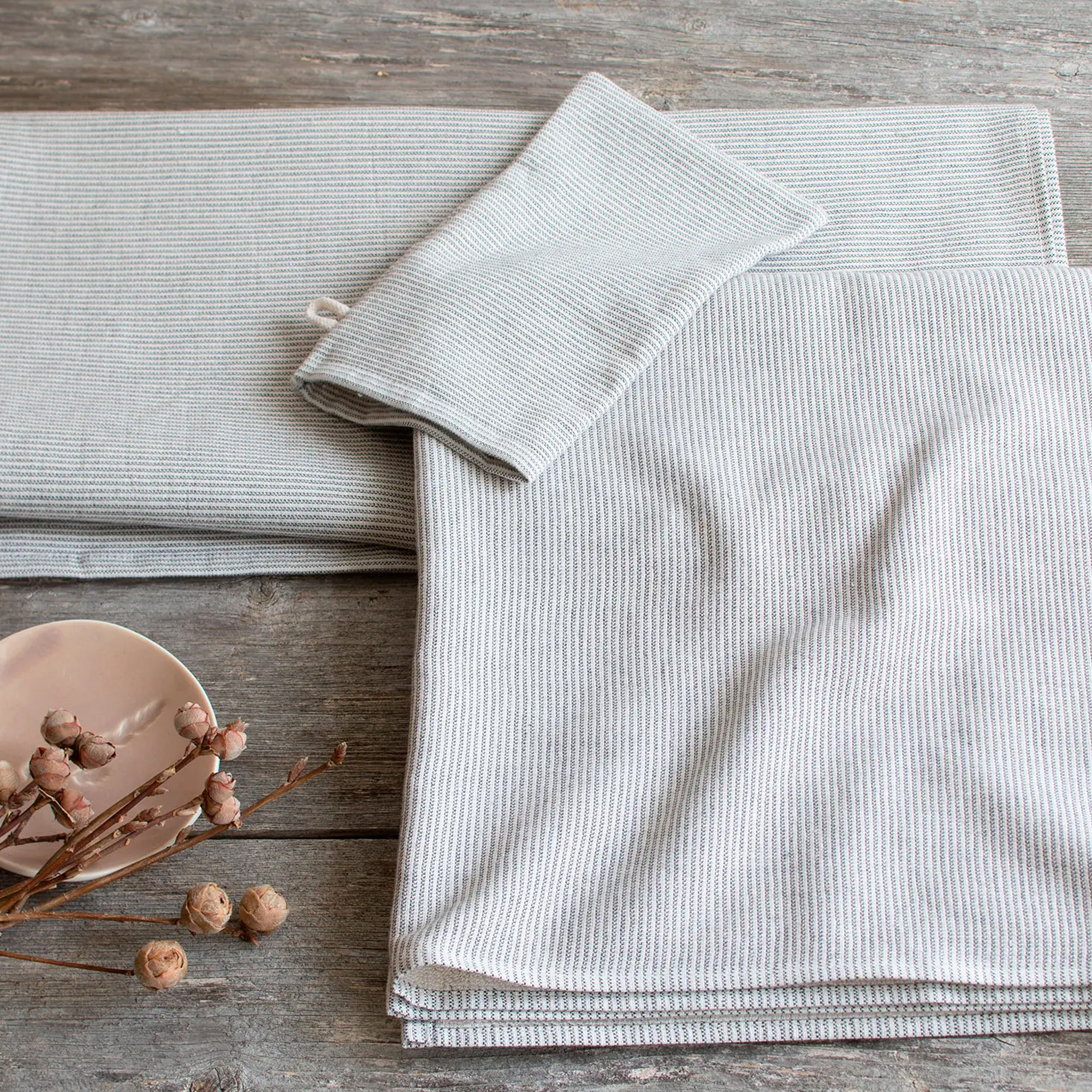 Set-Angebot: Badtextilien graphit gestreift - 2. Stk. Handtücher, 2 Stk. Duschtücher, 100 % Baumwolle, GOTS