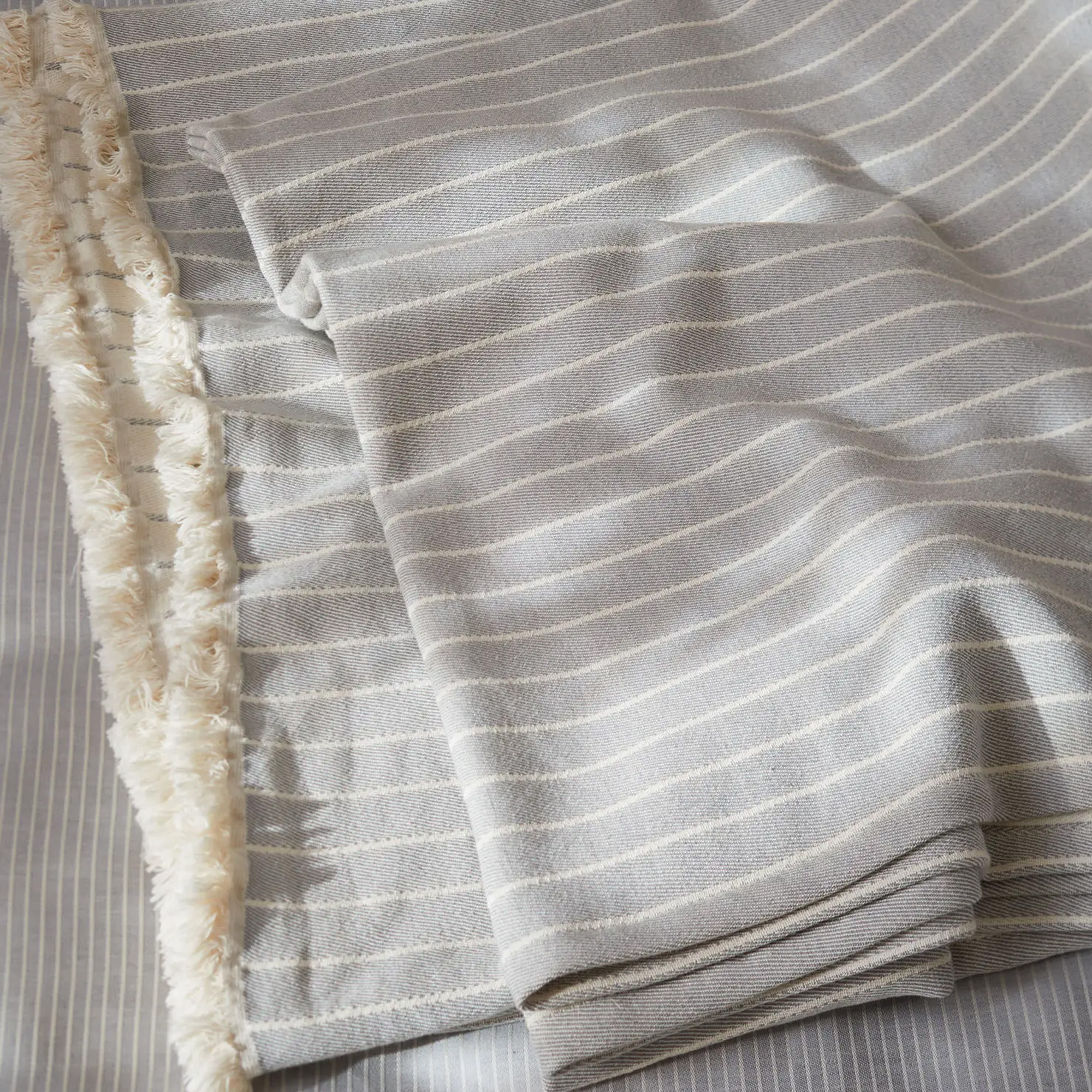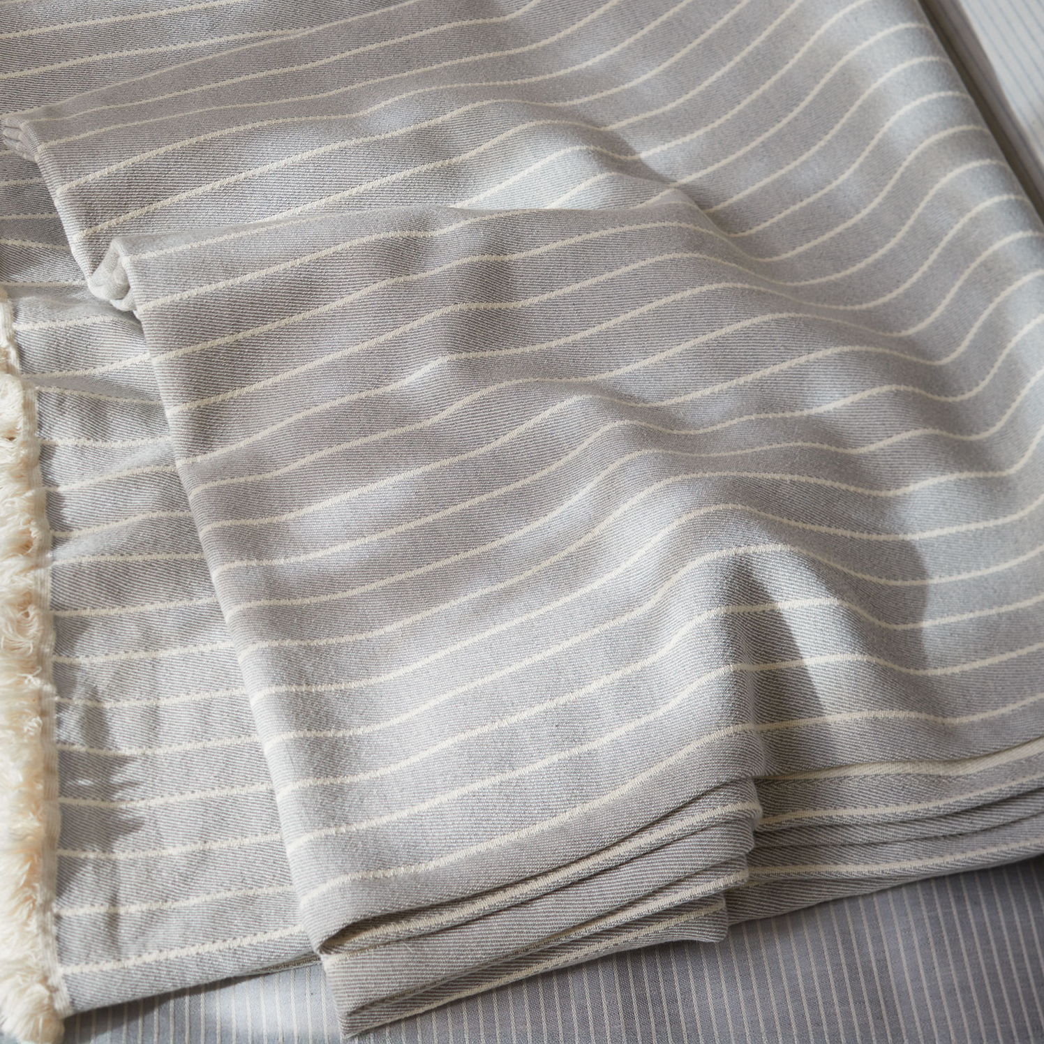 Die Tagesdecke Leandro überzeugt mit klassischer Eleganz. Das Naturprodukt mit der feinen Streifen-Dessinierung entsteht aus wertvoller Baumwolle und wird bei unserem Partnerbetrieb in Österreich nach dem strengen Global Organic Textile Standard gefertigt. Leandro ist nicht nur unglaublich weich und leicht im Griff, sondern kann auch mühelos gewaschen sowie getrocknet werden – ideal für Allergiker. Zudem kann die großzügige Wendedecke auch als Überwurf für breite Betten verwendet werden.