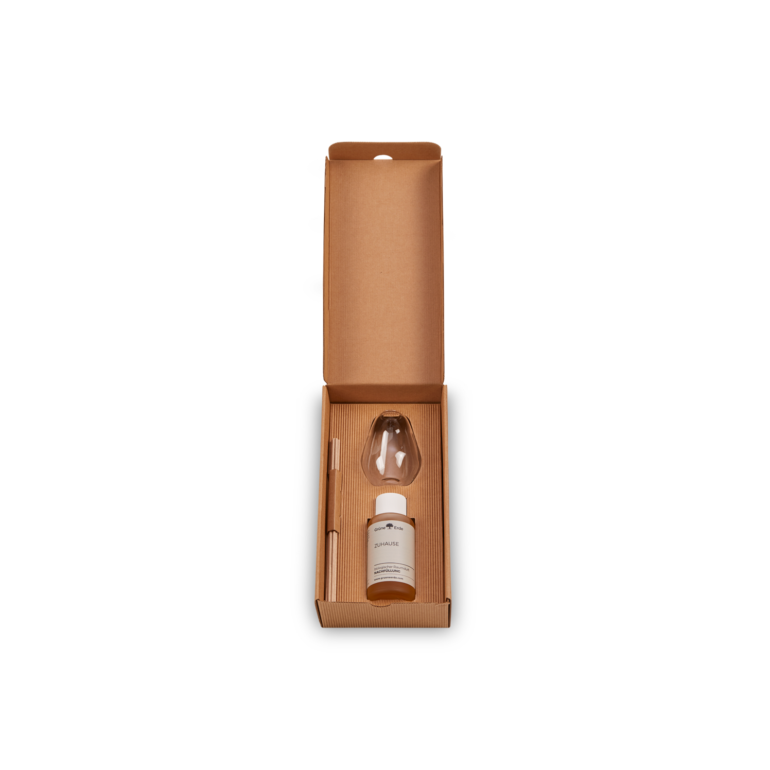 Als wir in einem Grüne Erde Store dieses Raumduftset entdeckten waren wir total begeistert, da der Duft sehr gut riecht und auch die Glasvase sehr hochwertig ausgearbeitet ist. Nachdem wir ihn gekauft hatten wurden wir leider enttäuscht, denn man konnte trotz des hohen Preises überhaupt nichts riechen. Nach ein paar Tagen haben wir den Raumduft in ein anderes Zimmer mit weniger Zugluft gestellt, was enttäuschender Weise auch nichts gebracht hat. Da der Duft an sich wirklich gut riecht werden wir in Zukunft wohl eher zu dem ätherischem Öl für Duftlampen greifen.