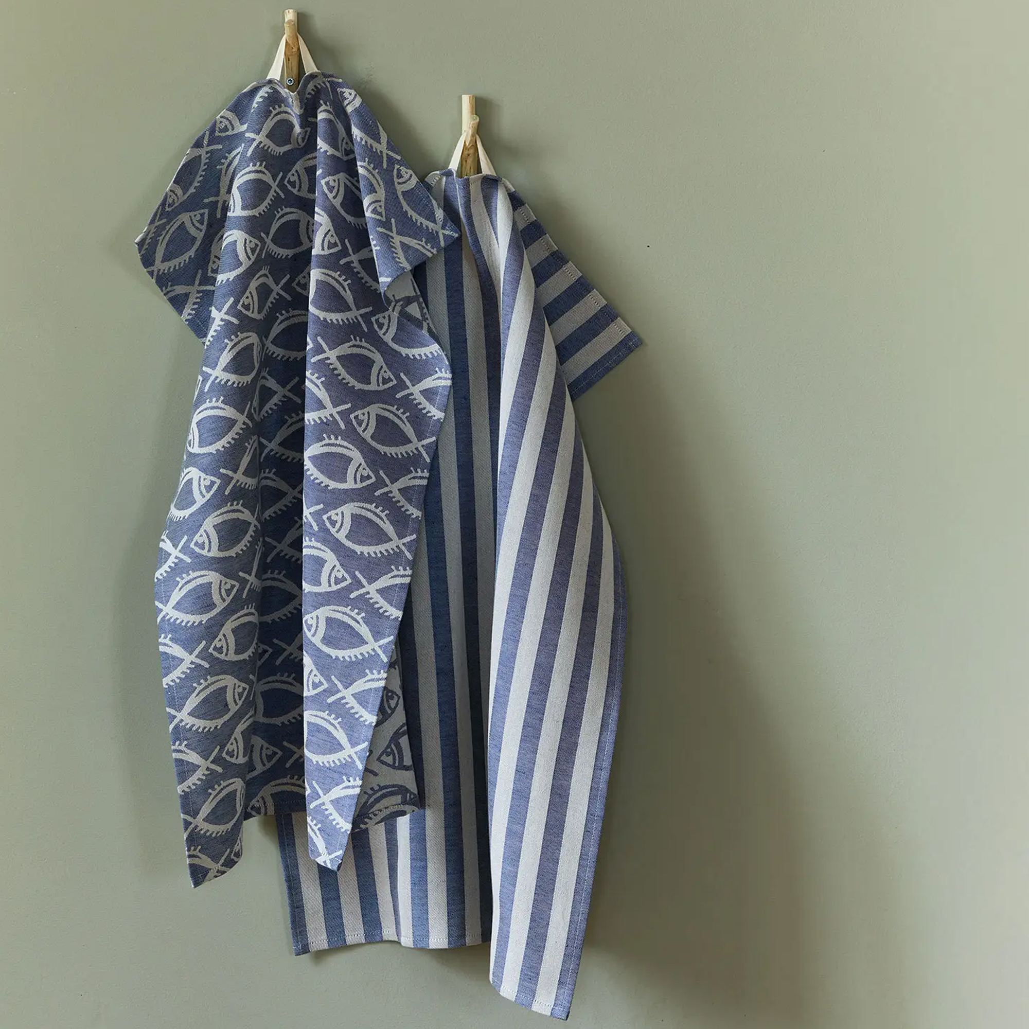 Das 2er-Set Geschirrtücher Joris vereint Funktionalität und Nachhaltigkeit. Beide Tücher entstehen aus einer bewährten Kombination aus 50 % Baumwolle und 50 % Leinen, unterscheiden sich jedoch in der Optik: Während ein Naturprodukt mit einer klassischen Streifen-Dessinierung besticht, überzeugt das zweite Modell mit einem All-over Fisch-Muster. Joris gilt als saugfähig, strapazierfähig und eignet sich perfekt für den vielseitigen Einsatz in der Küche. Das Set wird bei unserem langjährigen Partnerbetrieb in Österreich gefertigt.