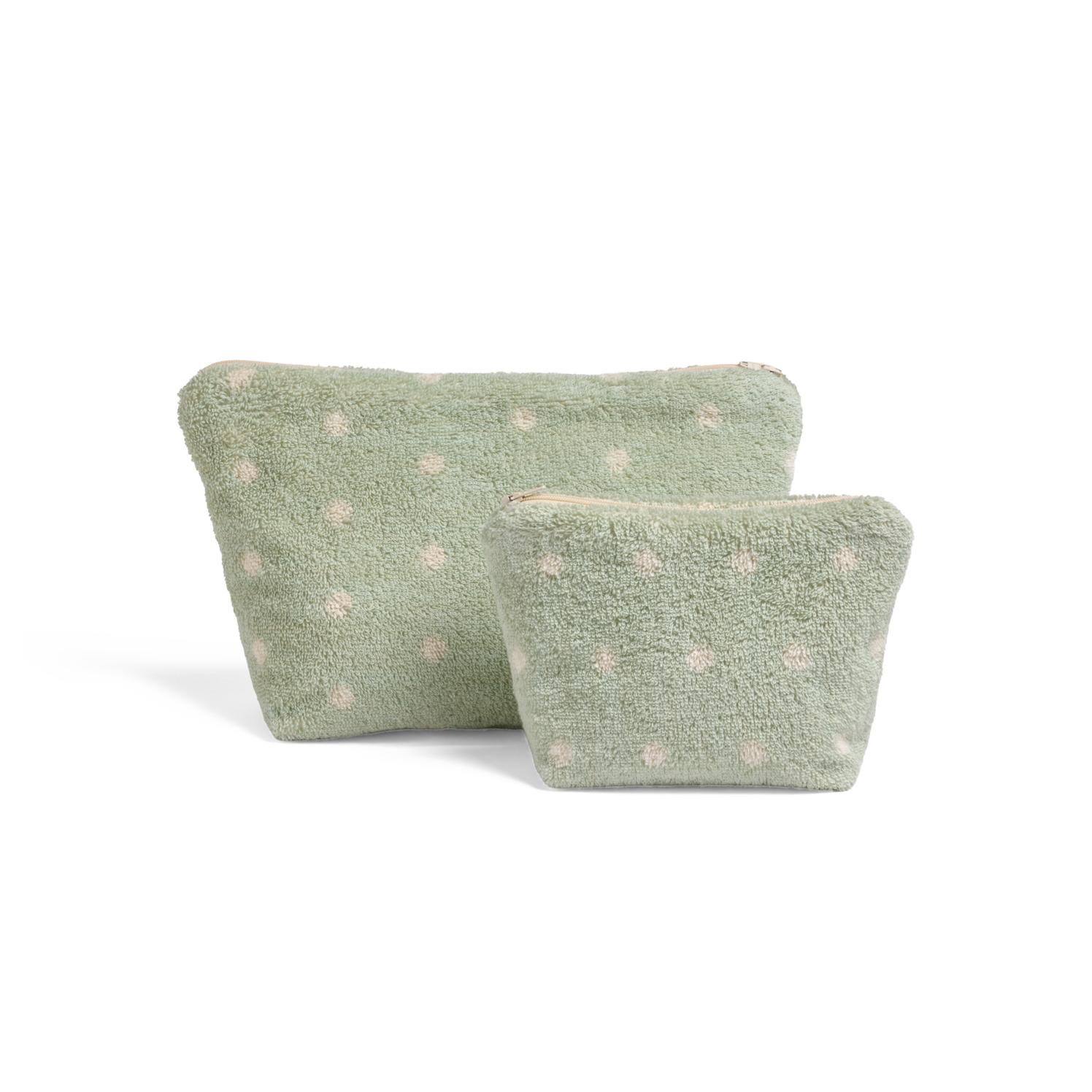 Die Aufbewahrungstaschen Pünktchen sind liebevolle Begleiter für Mamas und Kinder. Hergestellt aus weicher, saugfähiger Frottierware mit charmant eingewebtem Punkte-Dessin, vereinen sie natürliche Materialien mit funktionalem Design. Die angenehme Haptik und das zeitlose Muster machen sie zu einem stilvollen Ordnungshelfer – ob im Badezimmer, Wickelbereich oder unterwegs.