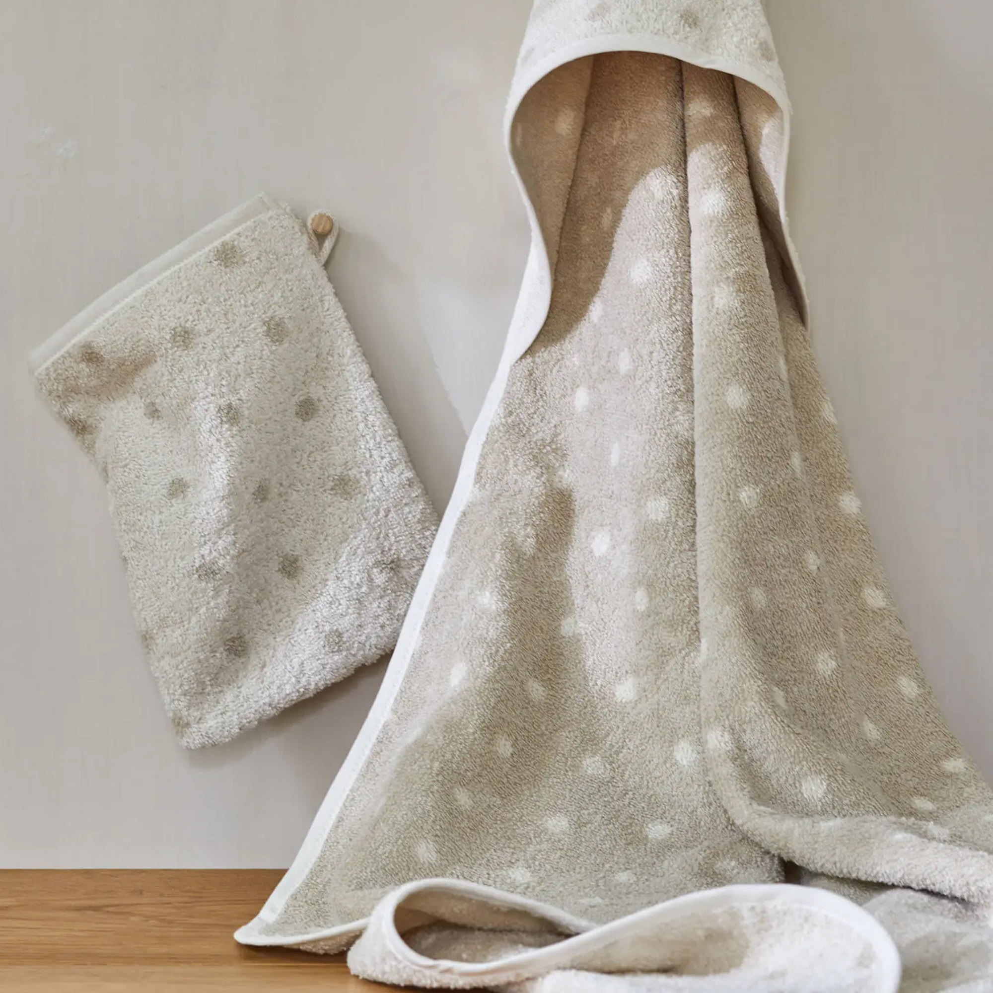 Baby-Badeserie Pünktchen 100 % Baumwolle, GOTS (natur, Kapuzenbadetuch)
