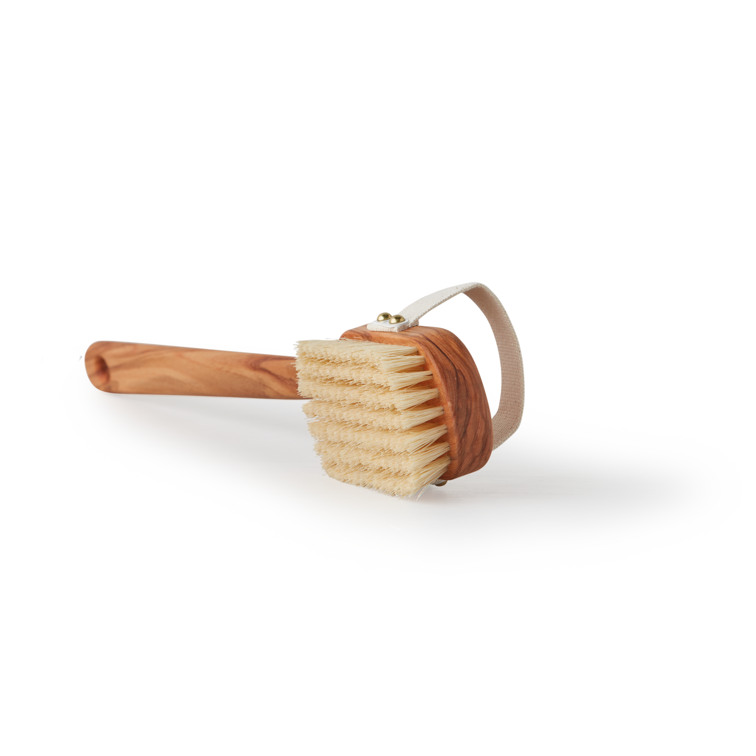 Diese schöne Badebürste entsteht aus hochwertigem Olivenholz bei unserem Partnerbetrieb in Deutschland. Dort wird sie mit dichten mexikanischen Sisal- und Kaktusborsten besteckt. Die Bürste besticht mit einer schönen Maserung sowie einer seidig-glatten Oberfläche. Sie eignet sich für anregende Nass- und Trockenmassagen, entfernt abgestorbene Hautschüppchen und erreicht dank ihrer Länge auch Stellen am Rücken und zwischen den Schulterblättern. Der praktische Griff liegt gut in der Hand, der abnehmbare Kopf ist ebenso als Handbürste verwendbar. Am Griffende mit praktischem Loch zum Aufhängen. Band am Bürstenkopf aus robuster Baumwolle. Nieten aus Bandstahl, vermessingt.