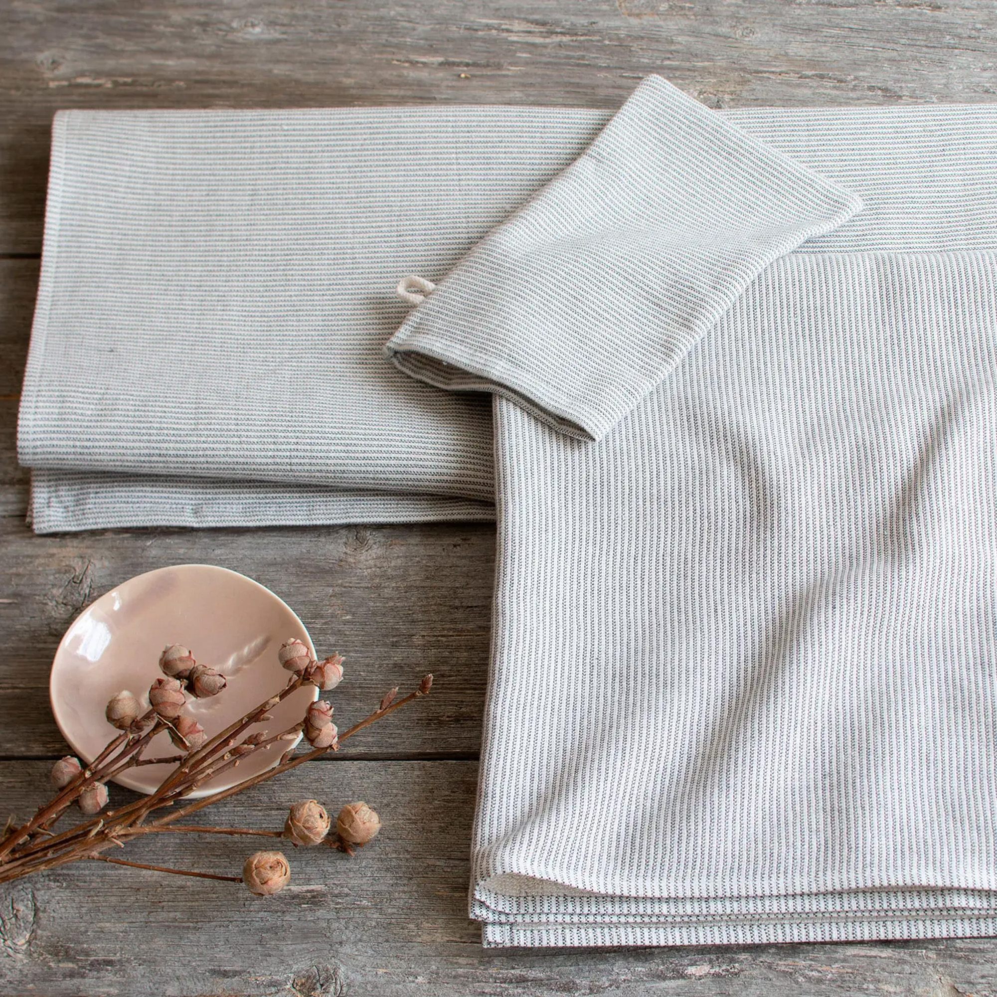 Badtextilien graphit gestreift 100 % Baumwolle, GOTS