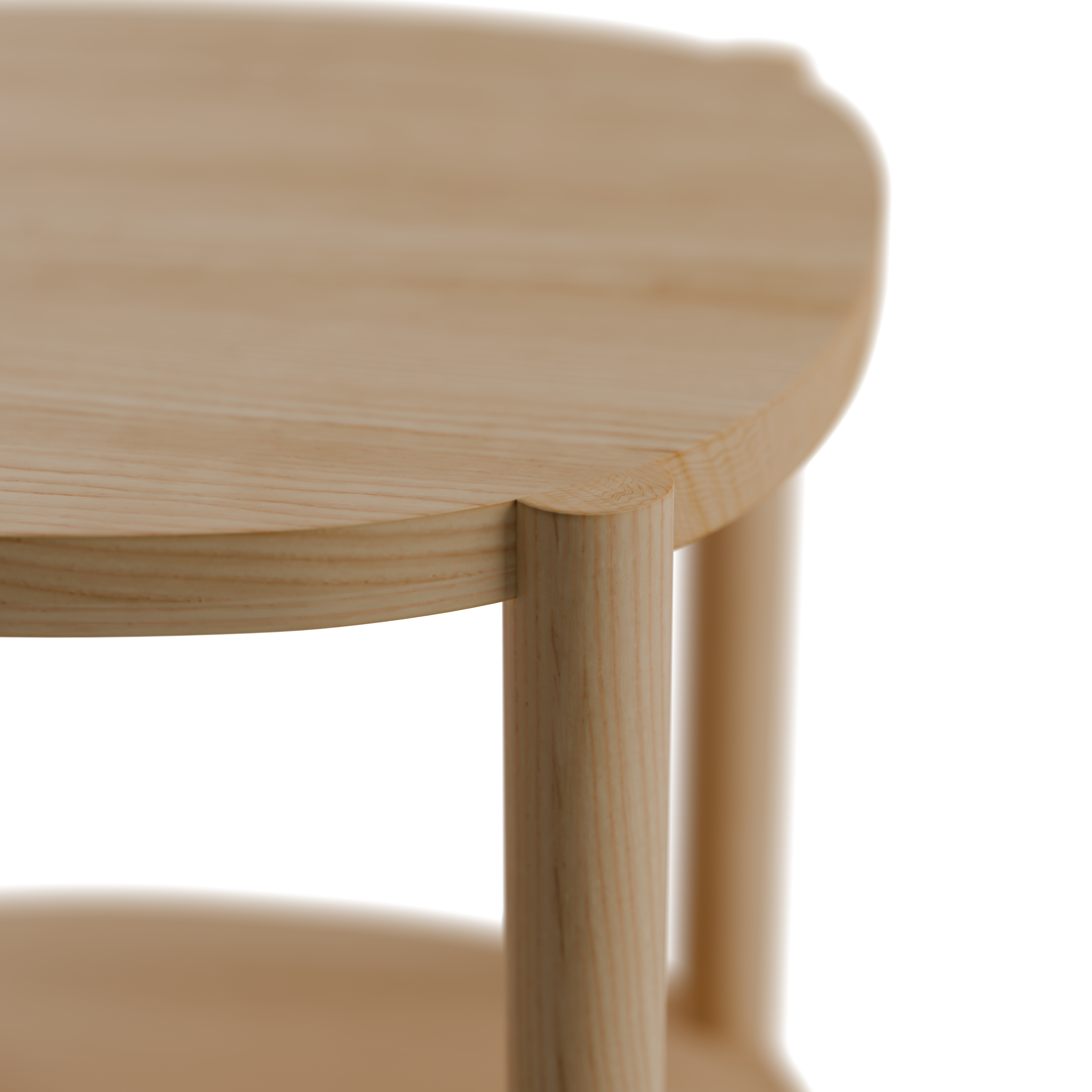 Die Beine sind mit der oberen Platte durch sogenannte Überblattungen, mit der unteren Platte durch Holzdübel verbunden: klassische, fix verleimte, metallfreie Holzfügetechniken beim Arbeiten mit Massivholz.