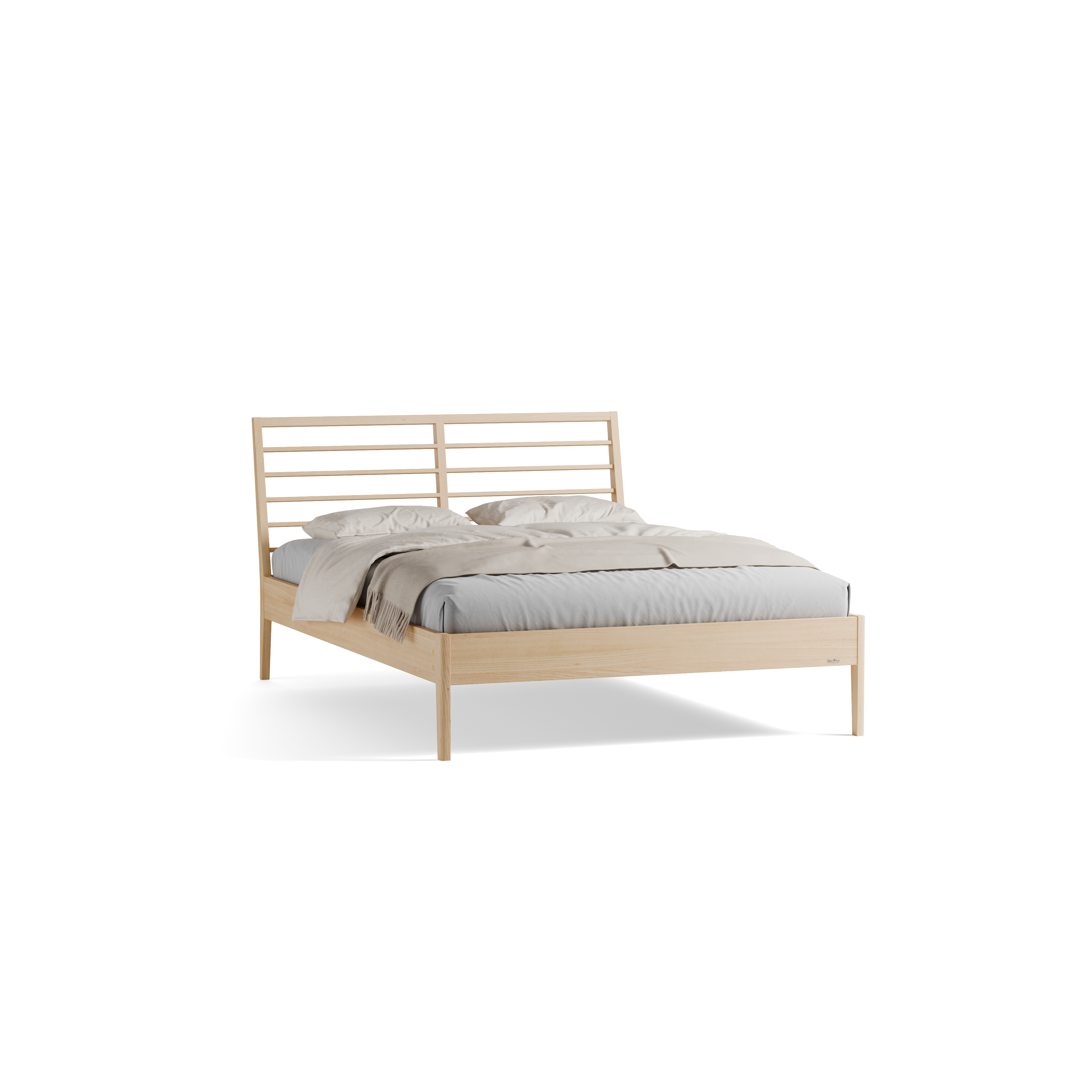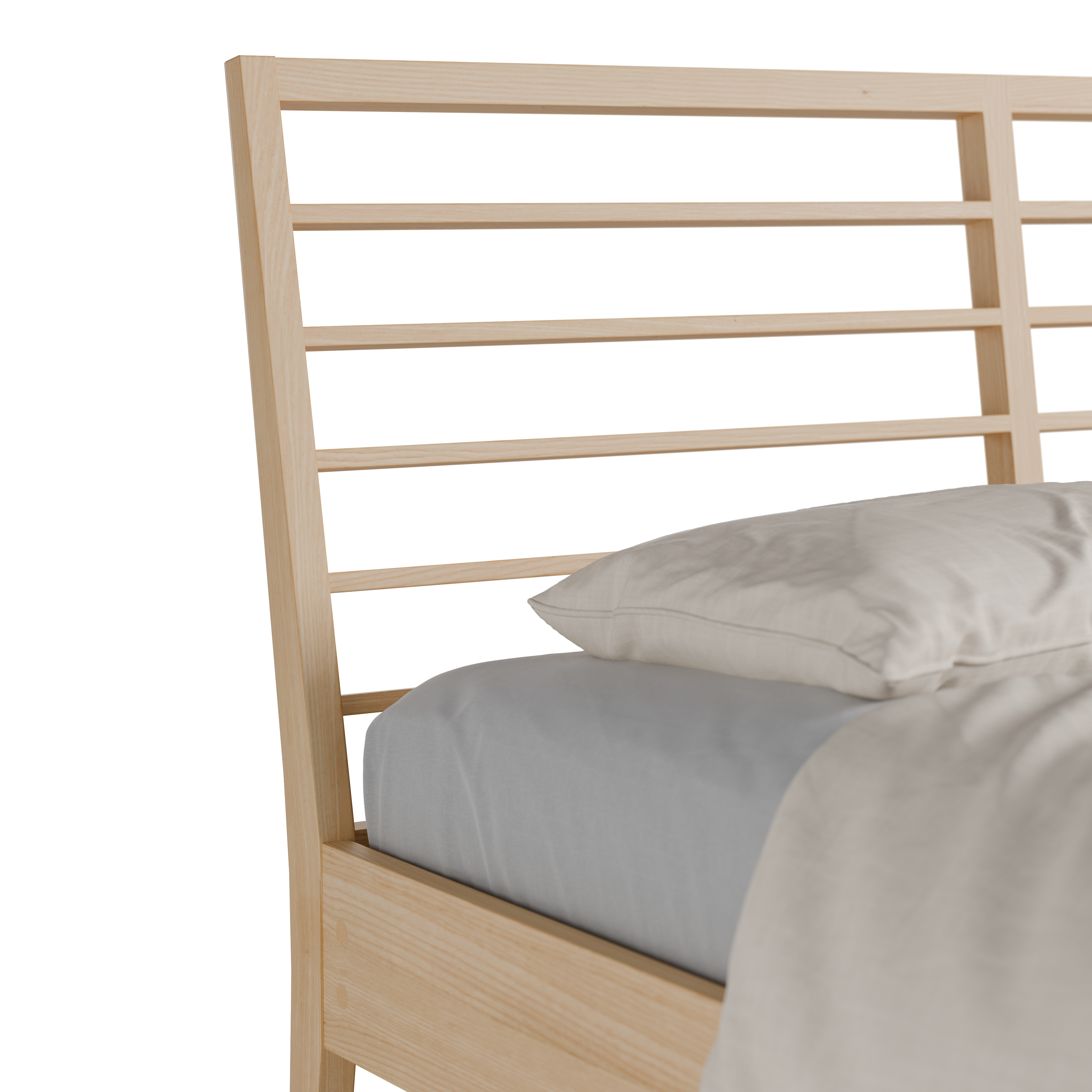 Almeno ist das beliebteste Bett von Grüne Erde. Auch, weil es unser vielfältigstes ist. Sie können es in mehreren Holzarten und Modellvarianten wählen, wie hier mit einem horizontalen Sprossenbetthaupt: optisch leicht, elegant und feingliedrig.