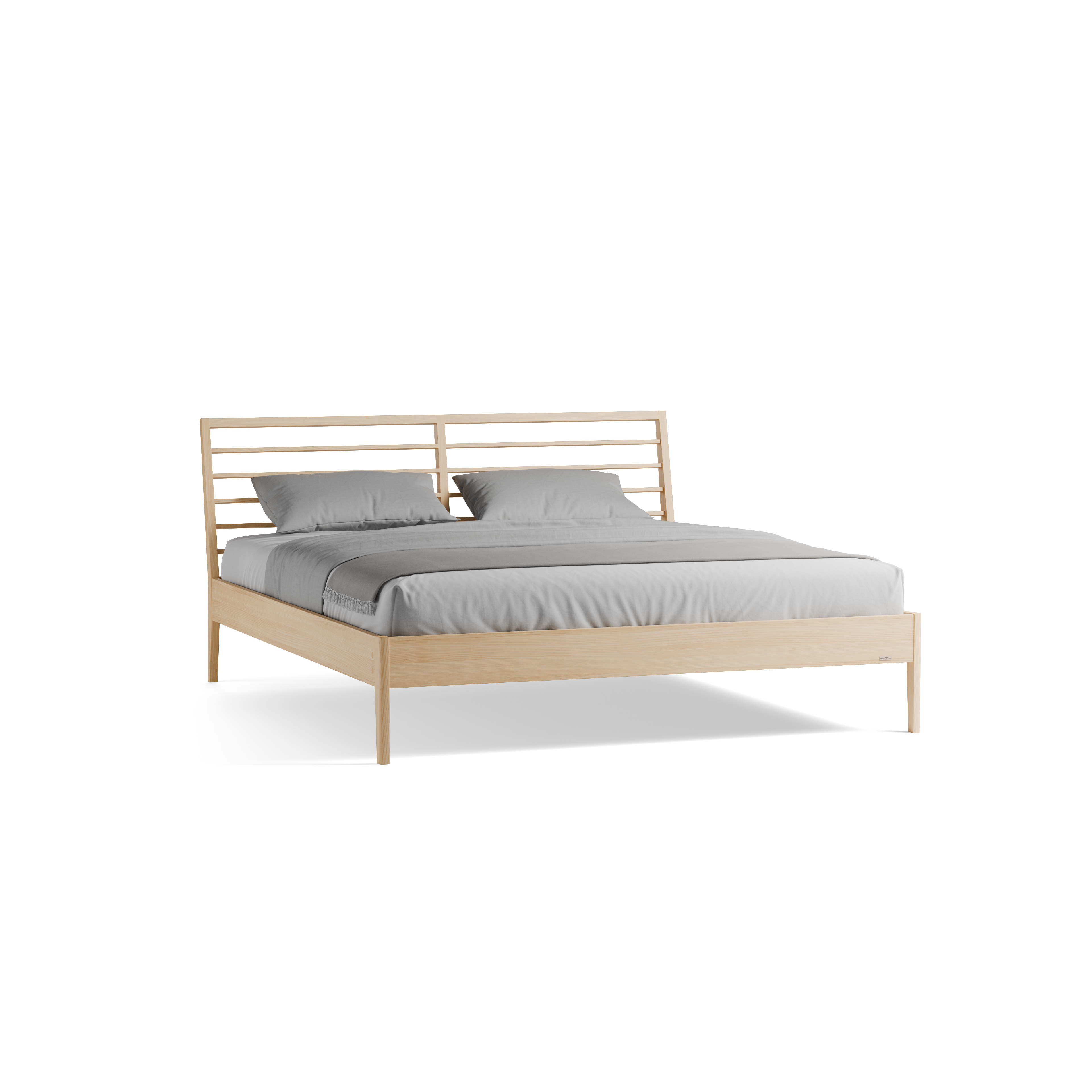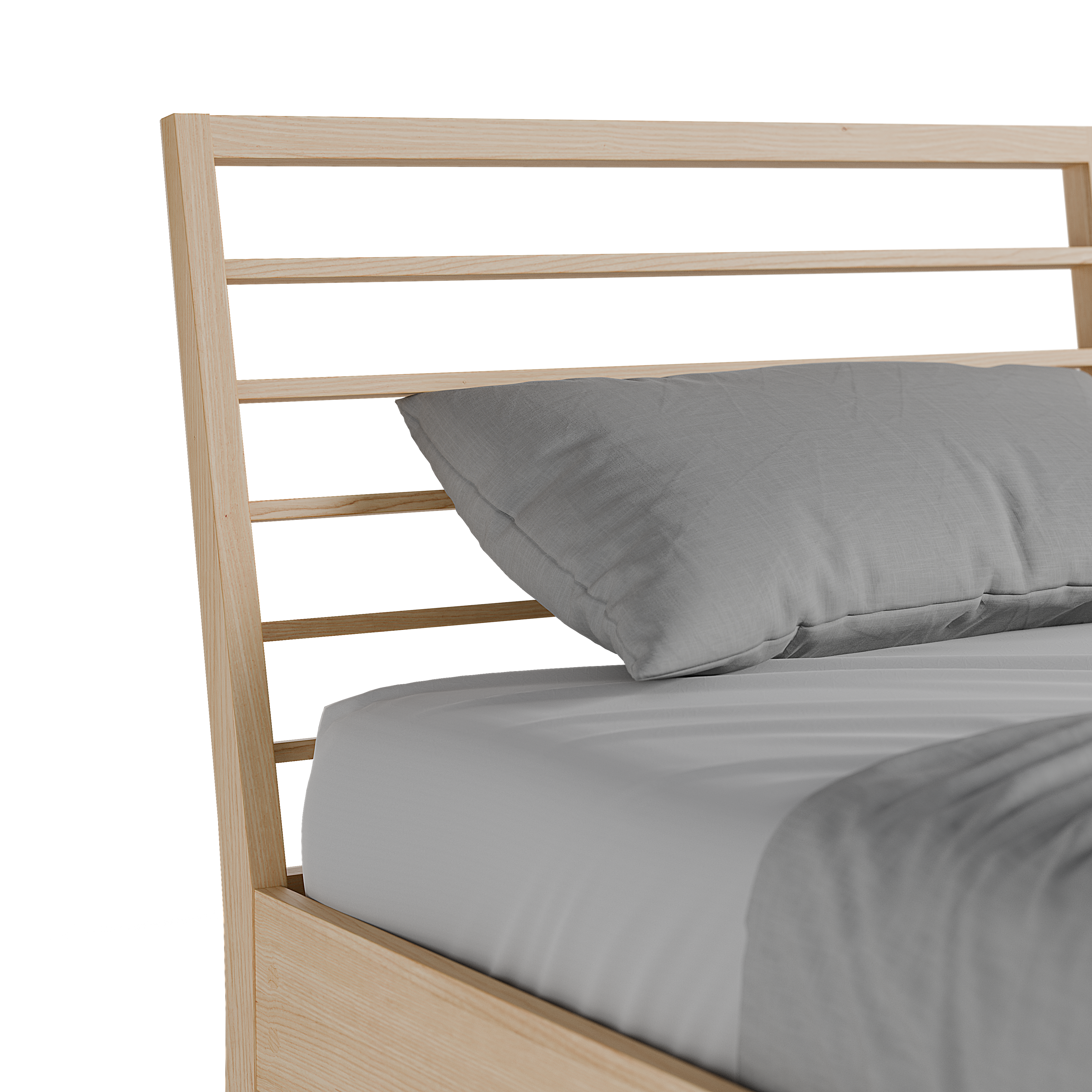 Almeno ist das beliebteste Bett von Grüne Erde. Auch, weil es unser vielfältigstes ist. Sie können es in mehreren Holzarten und Modellvarianten wählen, wie hier mit einem horizontalen Sprossenbetthaupt: optisch leicht, elegant und feingliedrig.