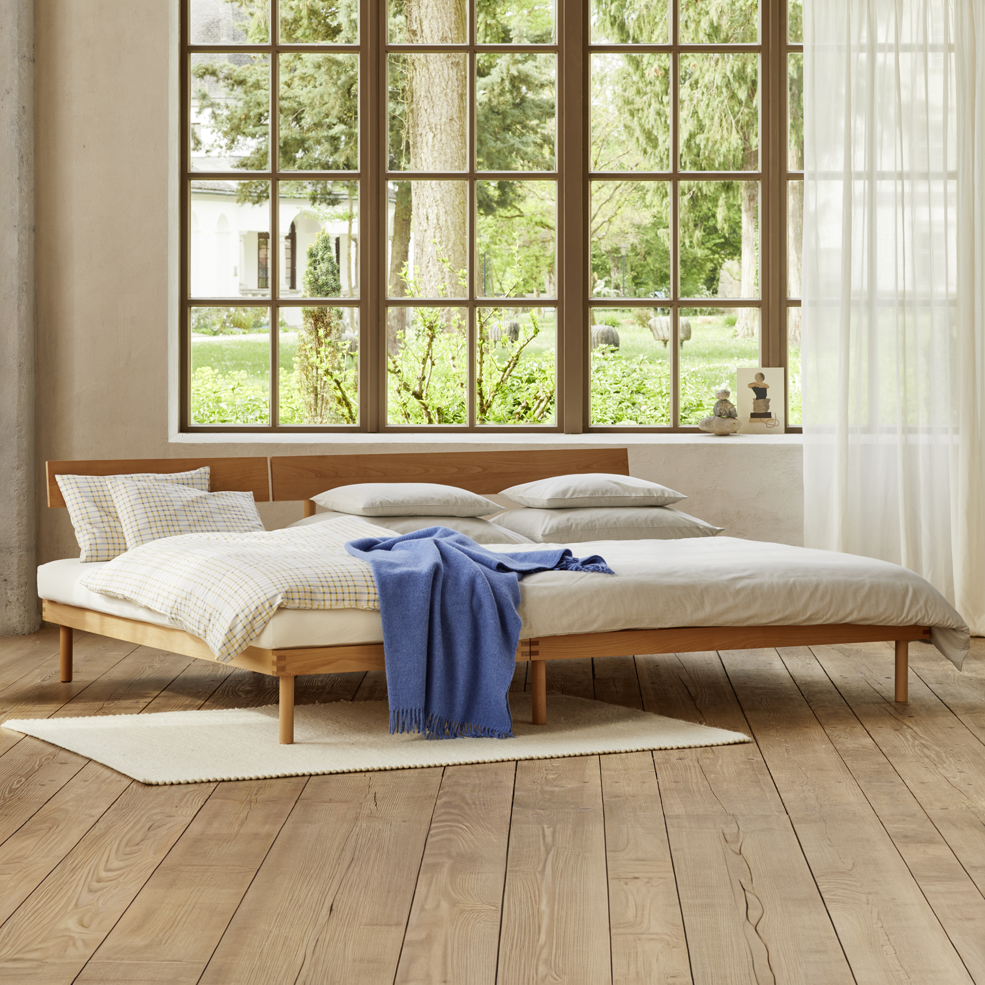 Dem Kind die Nähe der Eltern fühlen lassen, Geborgenheit und Sicherheit schenken, im gemeinsamen Bett ausreichend Platz für alle schaffen: Jukai Pur macht das Co-Sleeping einfach. Ohne große Umbauten und Werkzeug wird Jukai im Handumdrehen zum großzügigen Familienbett: Das bestehende Elternbett und ein zweites Bett werden mit einem Verbindungselement (Holzmanschette) aneinander gekoppelt. So entsteht eine große, durchgehende Liegefläche für Eltern und Kind – sicher, stabil und optisch einheitlich. Wenn sich die Familien- bzw. Schlafsituation wieder ändert, lässt sich das Familienbett ebenso einfach zerlegen wie es zusammengebaut wurde. Das breitere Jukai wird wieder zum Elternbett, das schmalere zum nunmehr einzeln stehenden Kinderbett.