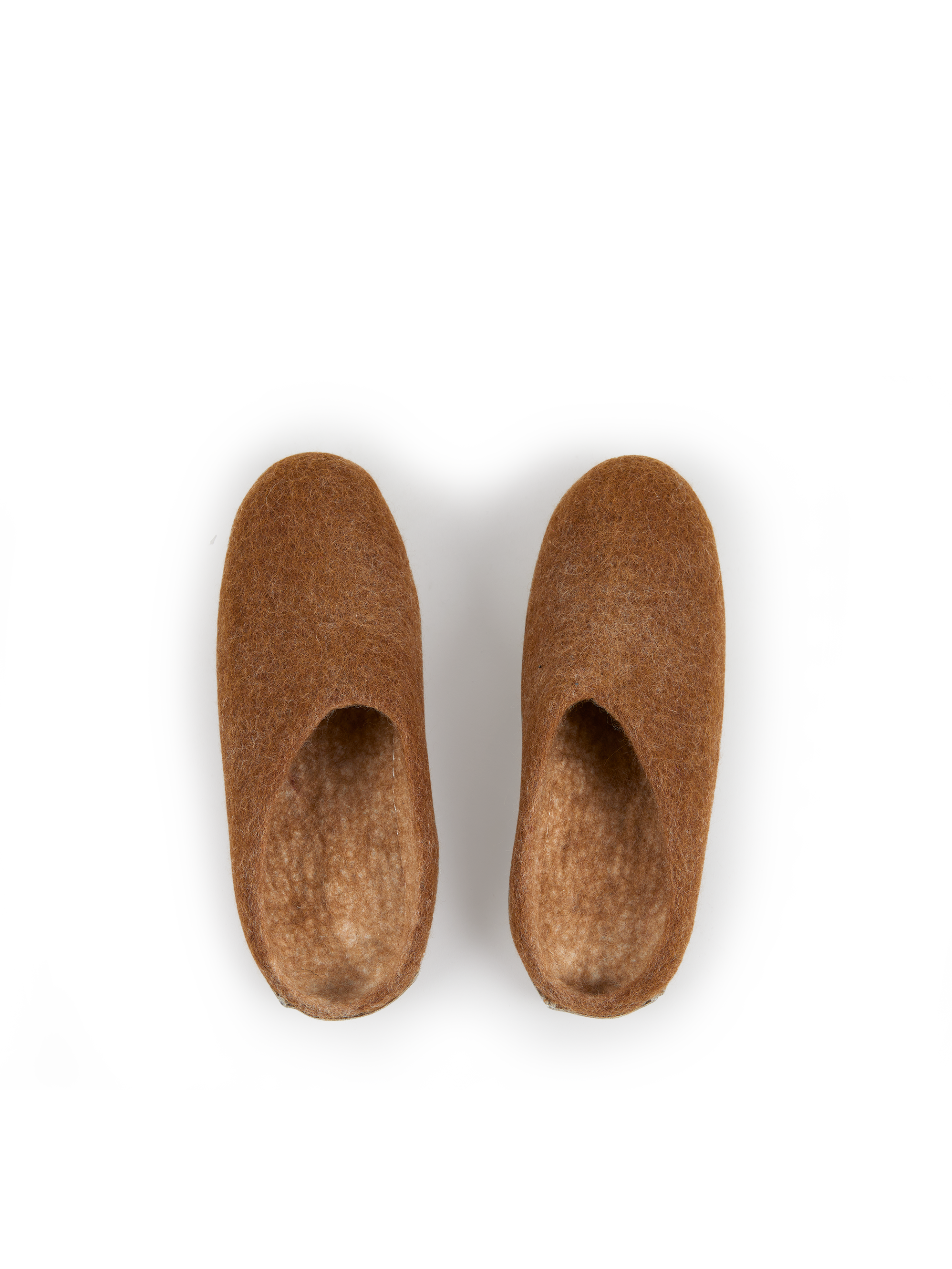 Hausschuh Amale 100 % Schafschurwolle mit pflanzlich gegerbter Sohle (cognac, 36/37)
