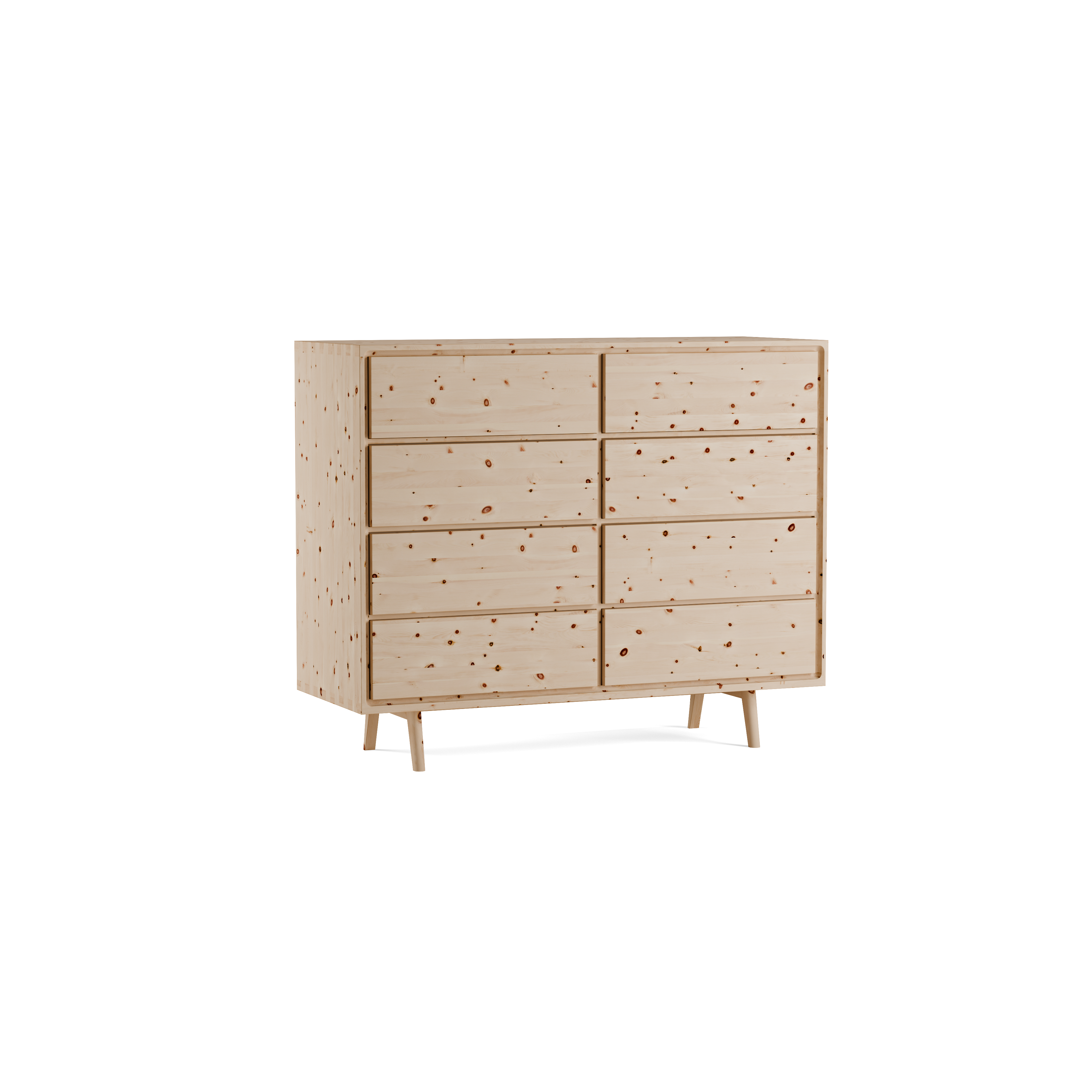 Das Zirbenholz ist einfach schön für die Sinne. Optisch sehr angenehme Proportionen. Feine Details. Sehr gute Funktionalität der Schubladen.
