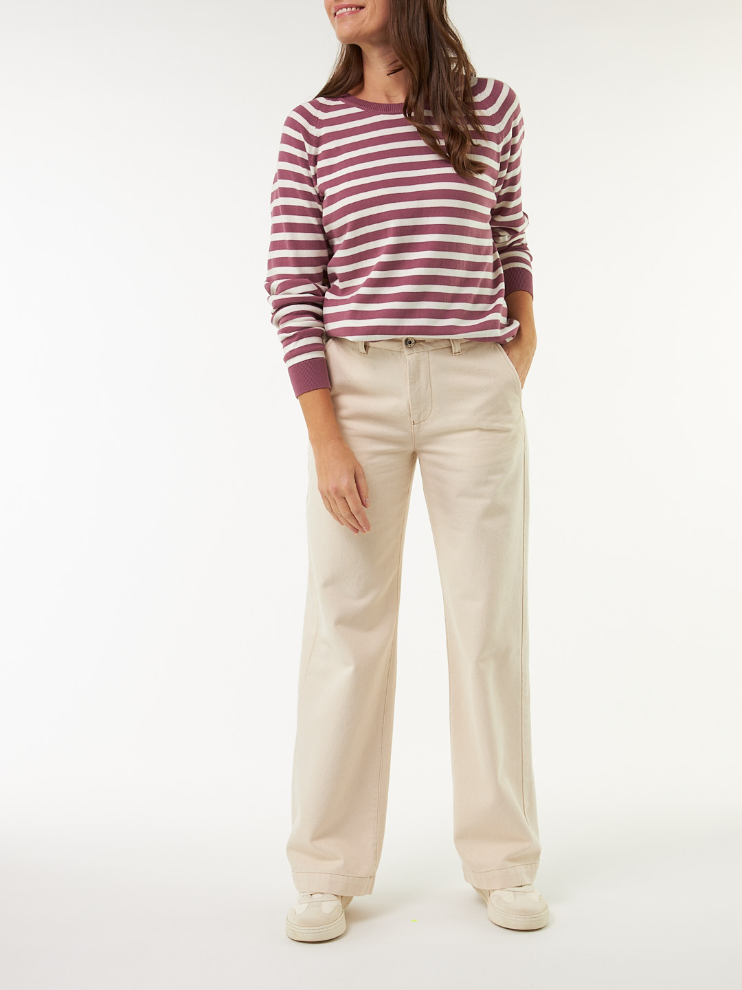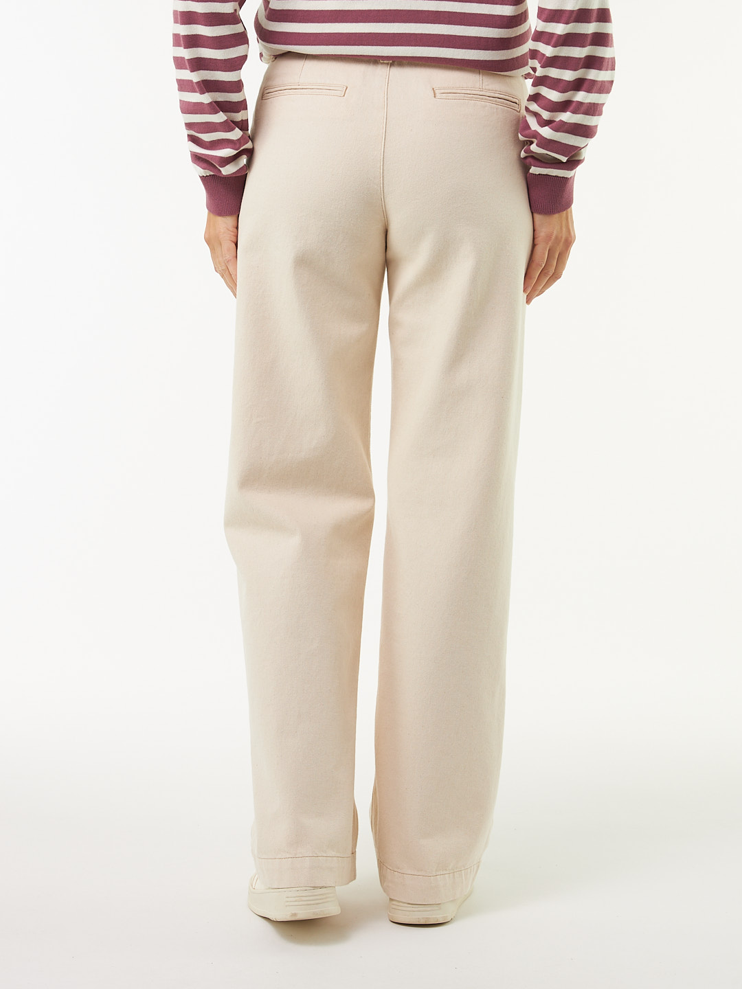 Diese Hose aus reiner, ungefärbter Baumwolle kbA überzeugt durch ihre schlichte Ästhetik und dem angenehm weichen Griff. Die cleane Anmutung wird unterstrichen mit dem weiten Bein – zeitlos, bequem und unkompliziert. Paspeltaschen sorgen für eine reduzierte Rückansicht, ohne die klare Linie zu stören. Ganz ohne Färbung. Gesamte Hose mit Kontraststeppung !!