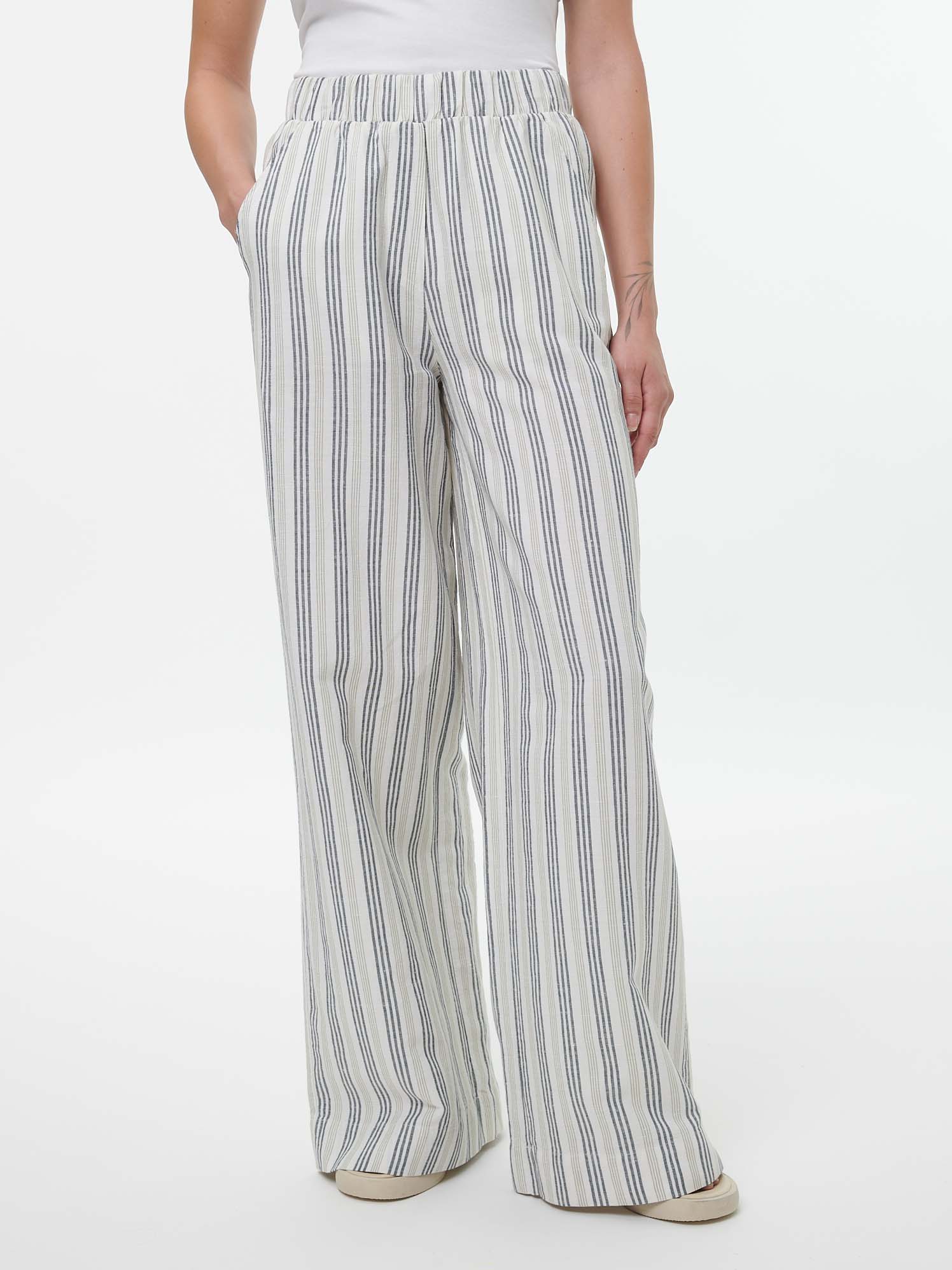 Hose aus Bio-Leinen und Baumwolle (multistreif grün, 34)