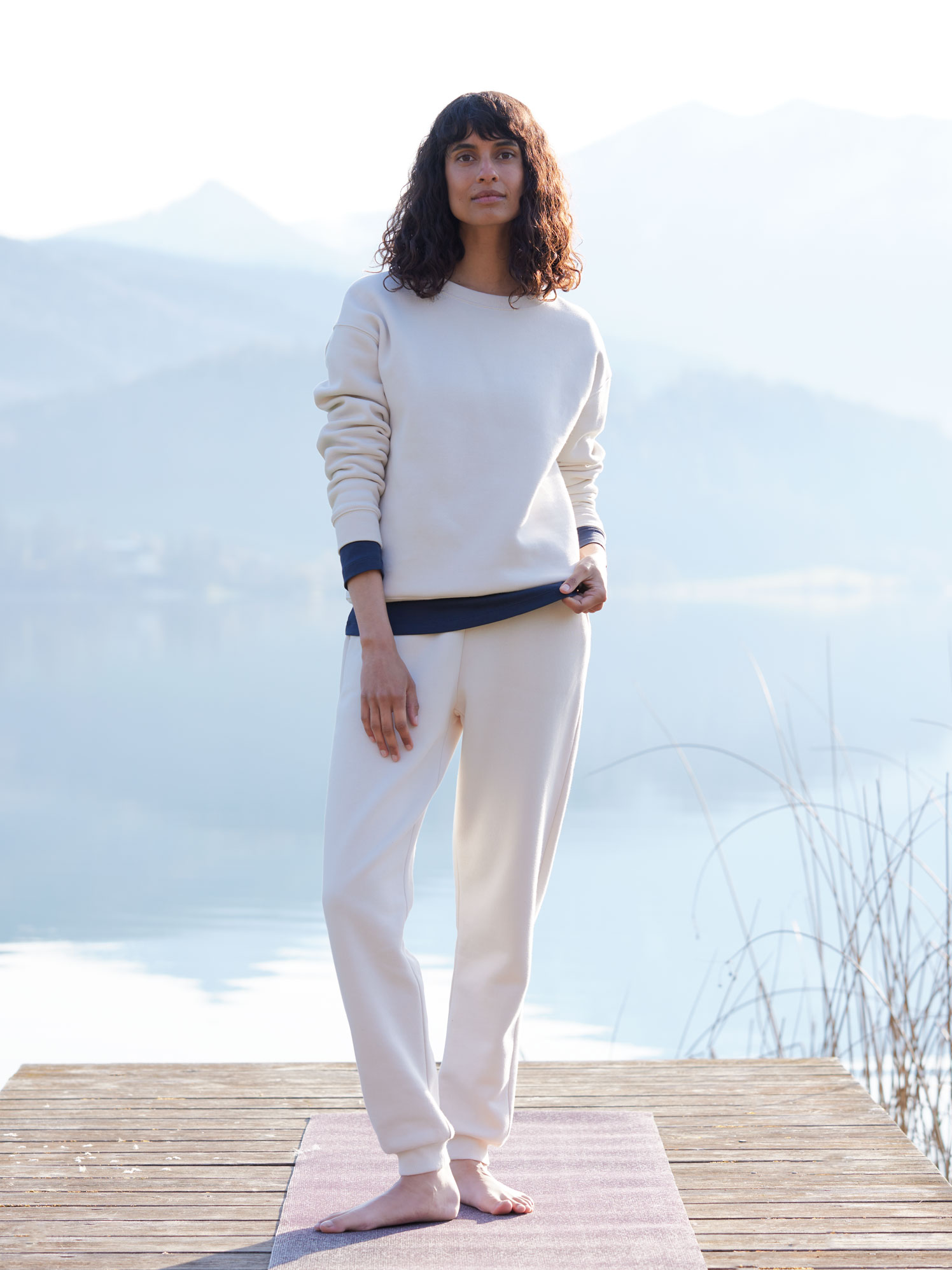 Ich habe schon das Sweatshirt in Perlmutt , nun diese Hose . Das ist die beste Qualität , die man finden kann , auch der Schnitt ist perfekt . Butterweich und anschmiegsam , man möchte sie nicht mehr ausziehen ...... Bei mir ist die Hose einen Tick zu lang - ich bin 166 cm groß , das stört mich aber nicht . Auch Perlmutt ist mein liebster Farbton als Sommertyp , einfach weil der Ton absolut keinen Gelbstich hat . Die Farbe bitte nie aus dem Programm nehmen . Vielen Dank , Grüne Erde .