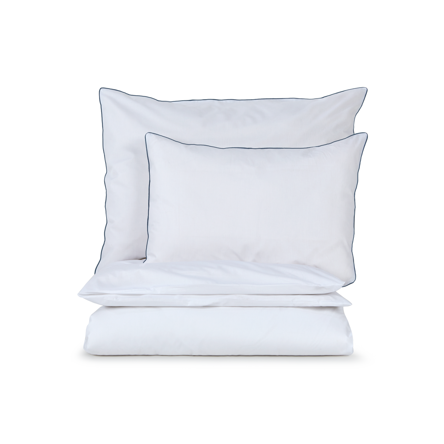 Die Bettwäsche Edna begeistert mit ihrer besonderen Leichtigkeit und edler Haptik aus hochwertigem Perkal. Die feine, dicht gewebte Baumwoll-Qualität zeichnet sich durch ihre glatte Oberfläche und ihre besonders atmungsaktive Struktur aus – ideal für erholsame Nächte und ein angenehmes Schlafklima. Der Deckenbezug überzeugt mit schlichter Eleganz ohne Paspelierung, während die Kissenbezüge mit zarten Paspeln in Kontrast die klassische Formensprache stilvoll abrunden. Das durchdachte Konzept ermöglicht es, Decken- und Kissenbezüge nach Belieben zu kombinieren und dabei stets ein harmonisches und stilvoll elegantes Gesamtbild zu schaffen.