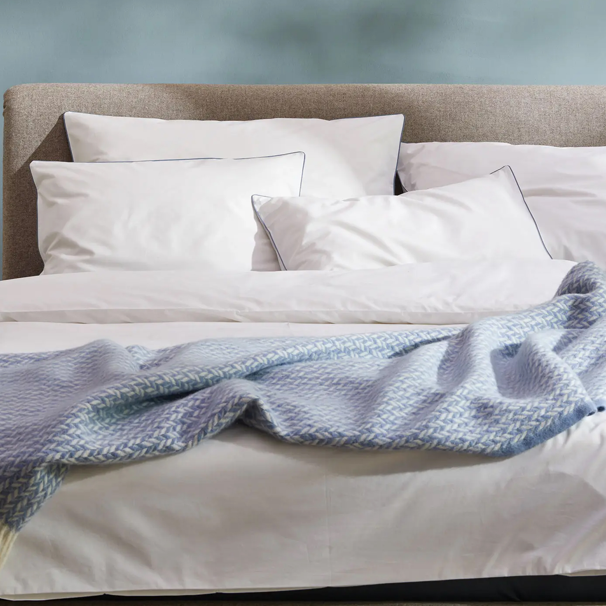 Die Bettwäsche Edna begeistert mit ihrer besonderen Leichtigkeit und edler Haptik aus hochwertigem Perkal. Die feine, dicht gewebte Baumwoll-Qualität zeichnet sich durch ihre glatte Oberfläche und ihre besonders atmungsaktive Struktur aus – ideal für erholsame Nächte und ein angenehmes Schlafklima. Der Deckenbezug überzeugt mit schlichter Eleganz ohne Paspelierung, während die Kissenbezüge mit zarten Paspeln in Kontrast die klassische Formensprache stilvoll abrunden. Das durchdachte Konzept ermöglicht es, Decken- und Kissenbezüge nach Belieben zu kombinieren und dabei stets ein harmonisches und stilvoll elegantes Gesamtbild zu schaffen.
