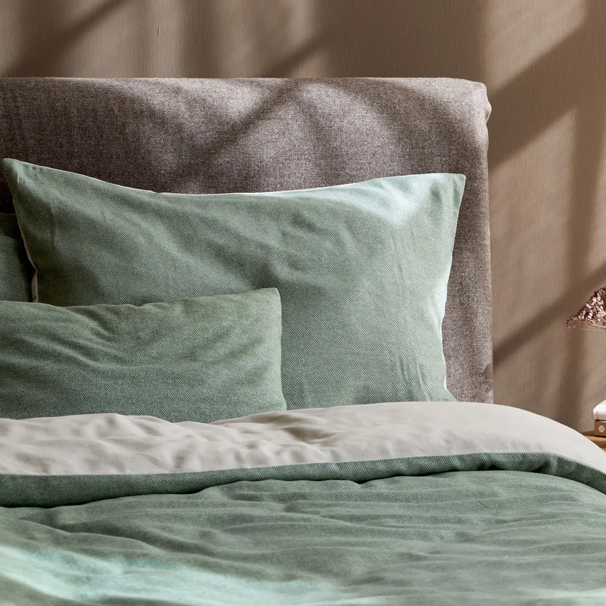 Die Wendebettwäsche Vigo aus besonders weichem Edelflanell garantiert behaglich kuschelige Stunden in der kühleren Jahreszeit! Das attraktive Fischgratmuster in der harmonischen Farbstellung wirkt elegant und kommt aufgrund der Kombination von Hell und Dunkel gut zum Ausdruck. Die aufgeraute Oberfläche fühlt sich nicht nur angenehm an, sondern wärmt auch ausgezeichnet. Abgerundet wird das Naturprodukt mit einem sichtbaren Knopfverschluss mit edlen Steinnussknöpfen.