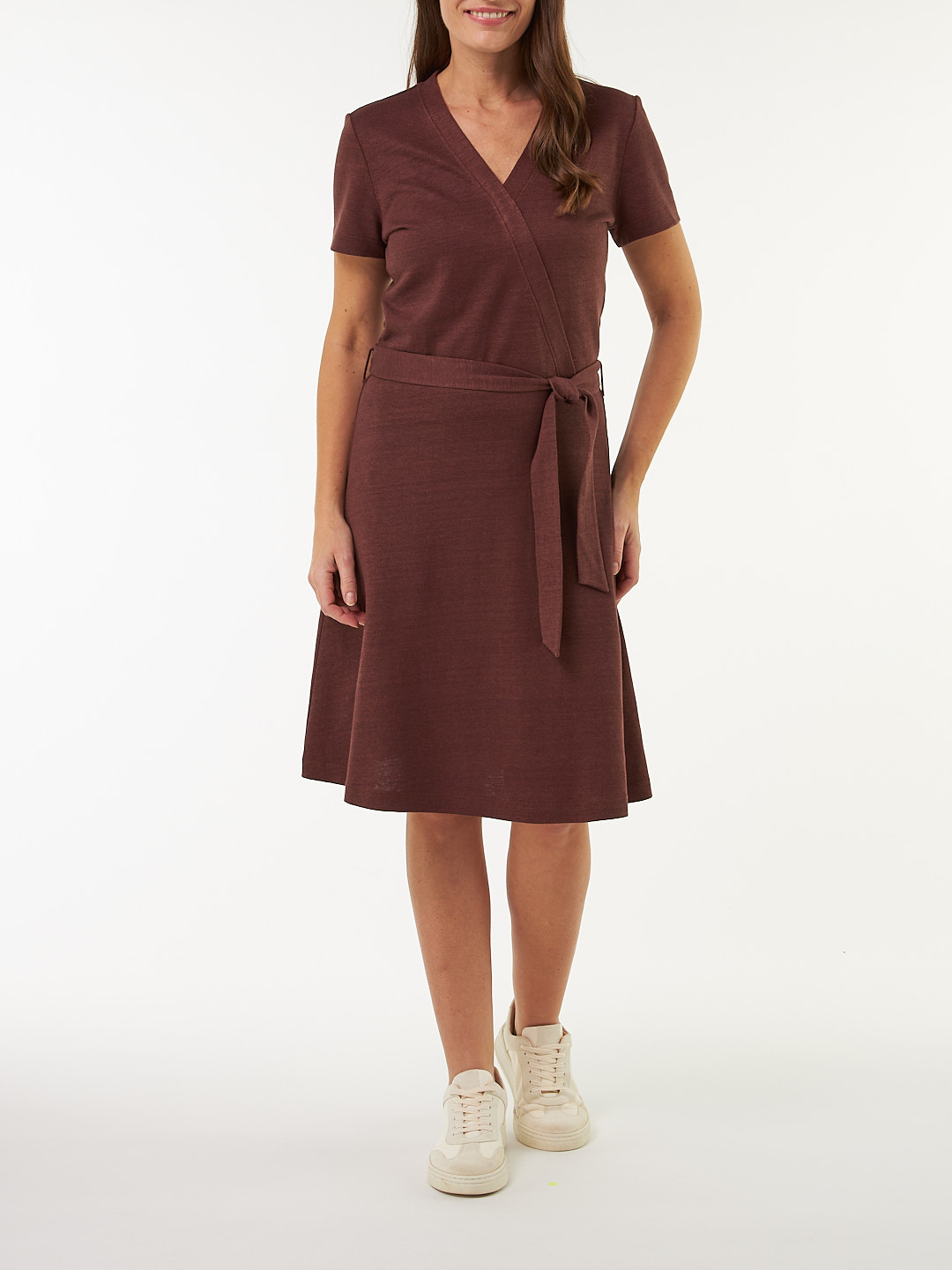 Kleid in Wickeloptik aus Bio Leinen/Baumwolle (chocolate, 38)