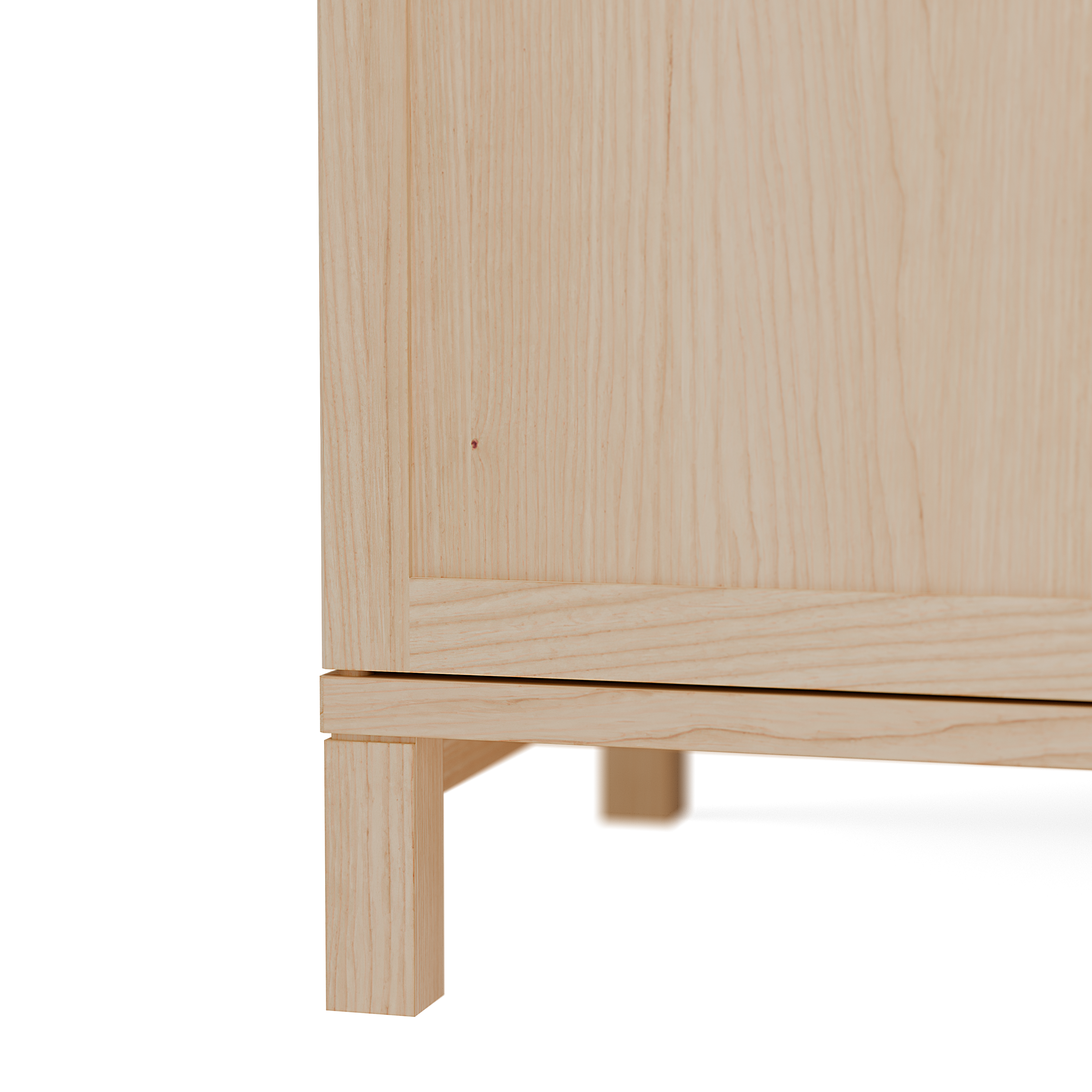 mit Fußgestell (Schrankhöhe H 186,4 cm) Der Korpus dieser Schrankvariante ruht auf einem 15 cm hohen, stabilen, solide verleimten Fußgestell aus Massivholz. Es hebt den Schrank vom Boden ab, macht ihn optisch leicht.