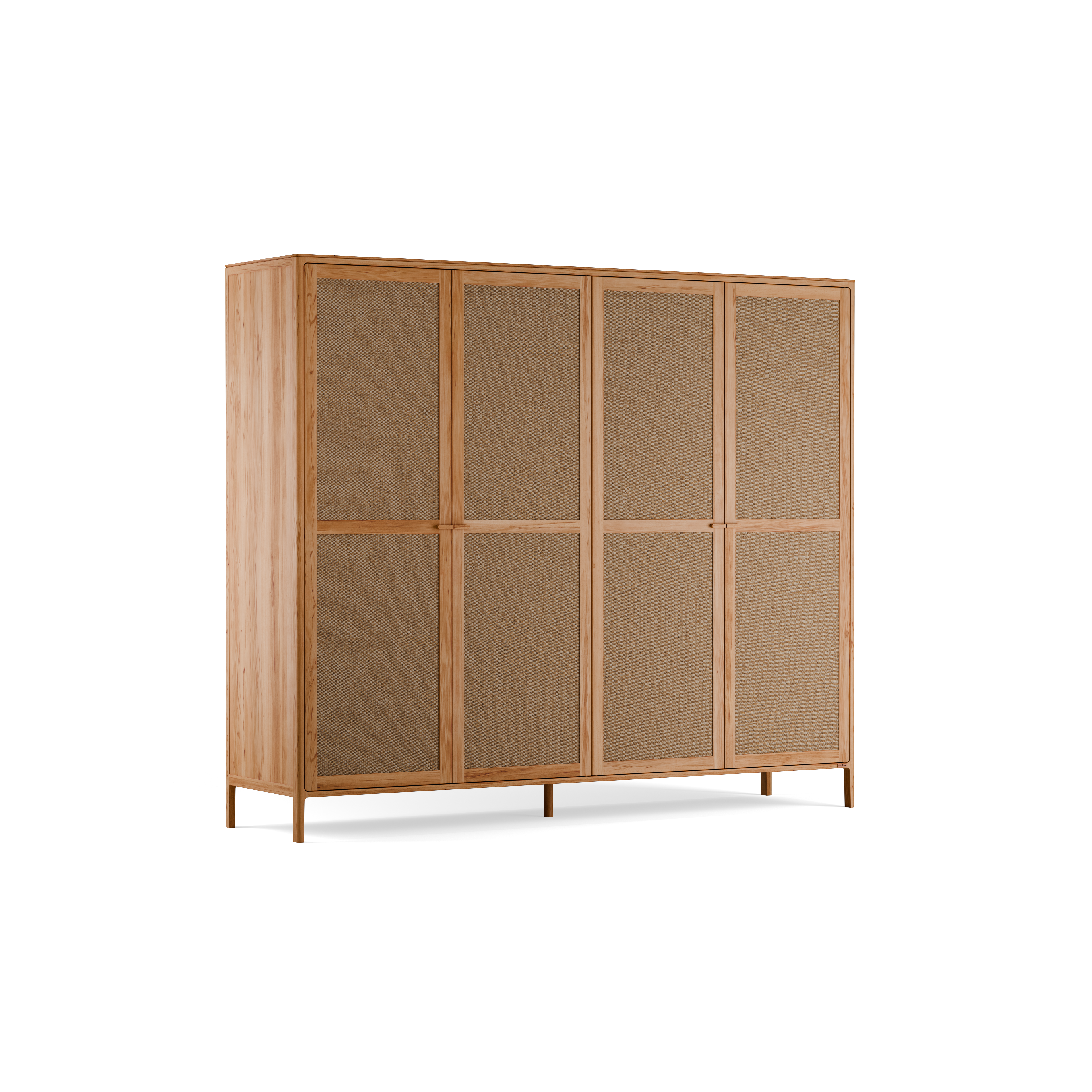 Wir fertigen Tenso in klassischer Rahmen-und-Füllung-Bauweise: Rahmen aus Massivholz, Füllungen aus Holz oder Stoff. Diese Konstruktion macht den Schrank relativ leicht und gleichzeitig sehr stabil.