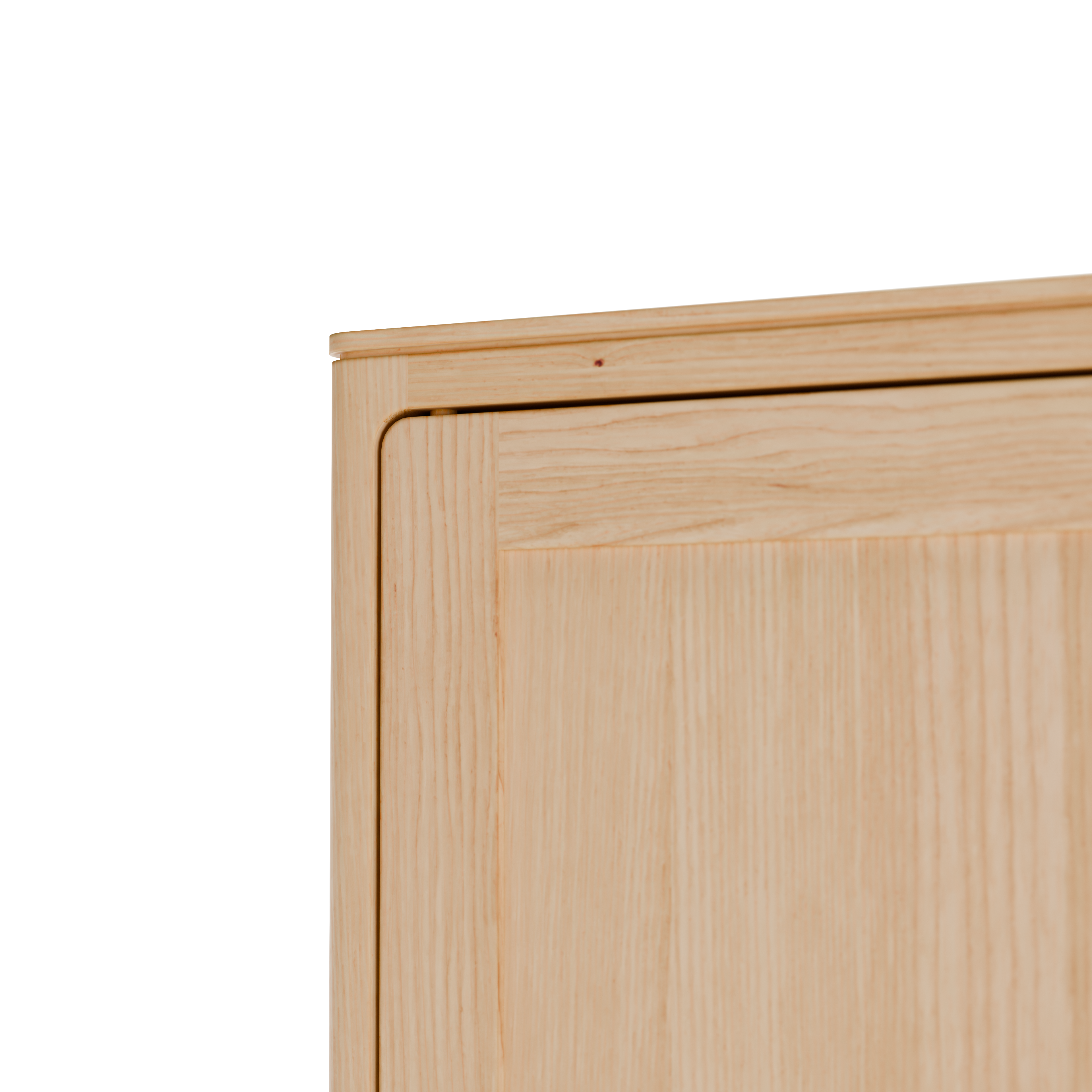 Wir fertigen Tenso in klassischer Rahmen-und-Füllung-Bauweise: Rahmen aus Massivholz, Füllungen aus Holz oder Stoff. Diese Konstruktion macht den Schrank relativ leicht und gleichzeitig sehr stabil.