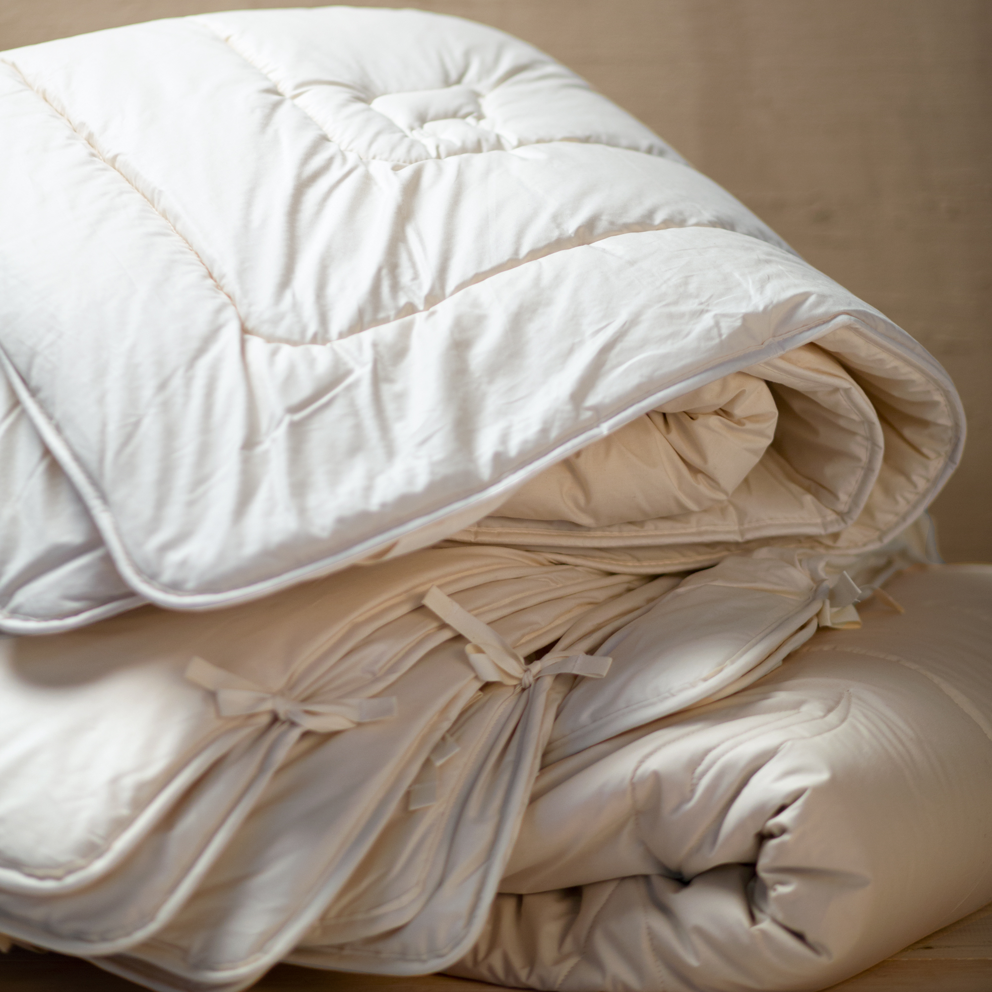 - sehr leichte Sommerdecke aus Eri-Seide und mittelwarme Ganzjahresdecke aus Yakflaumhaar