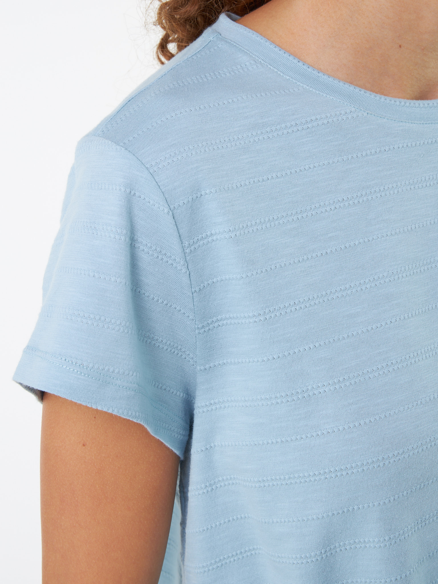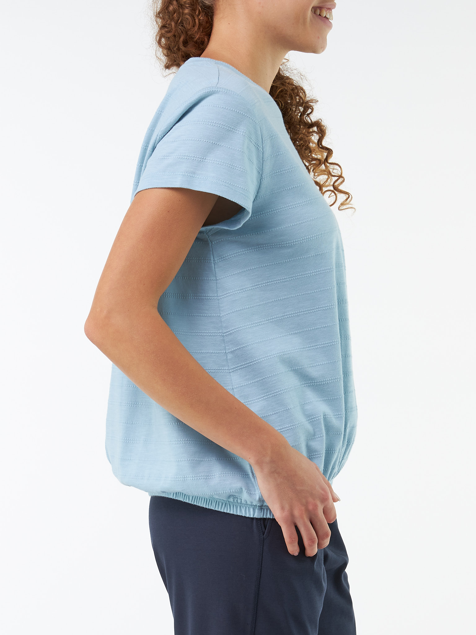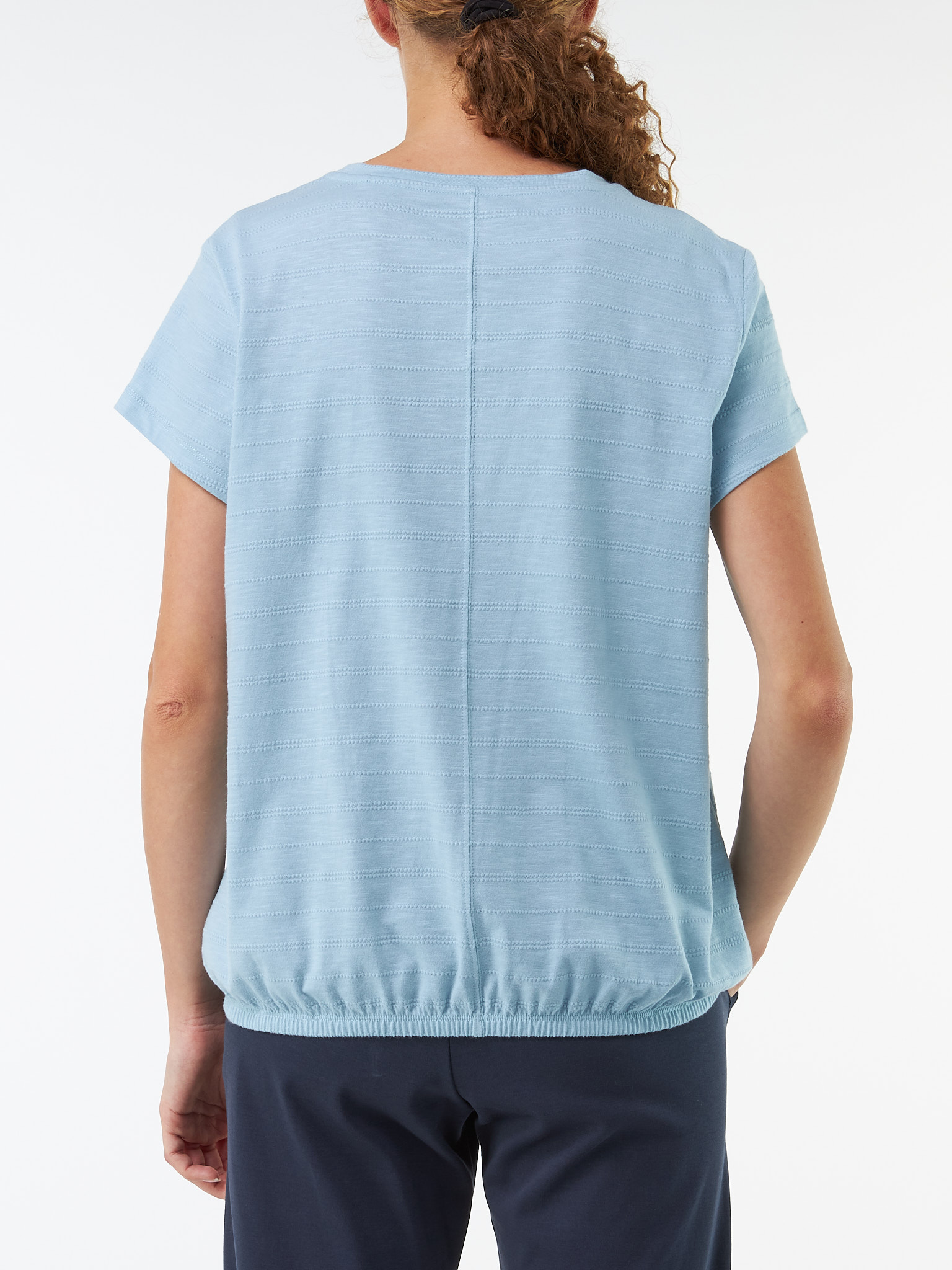 Loose-Fit-Shirt mit zarter Ajour-Struktur aus angenehm-weicher Baumwoll-Qualität: Der legere O-Shape-Schnitt mit Mittelnaht auf der Rückseite und Gummizug am Saum sorgt für eine moderne Silhouette. V-Ausschnitt und ein elastischer Bund am Saum verleihen dem Shirt eine feminine Leichtigkeit – ein unkomplizierter Allrounder für jeden Tag.