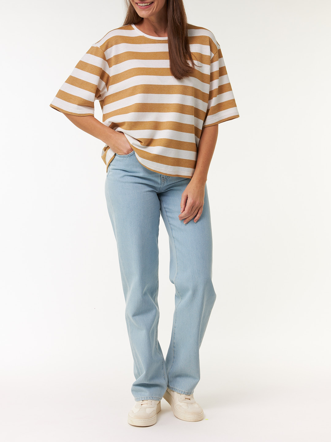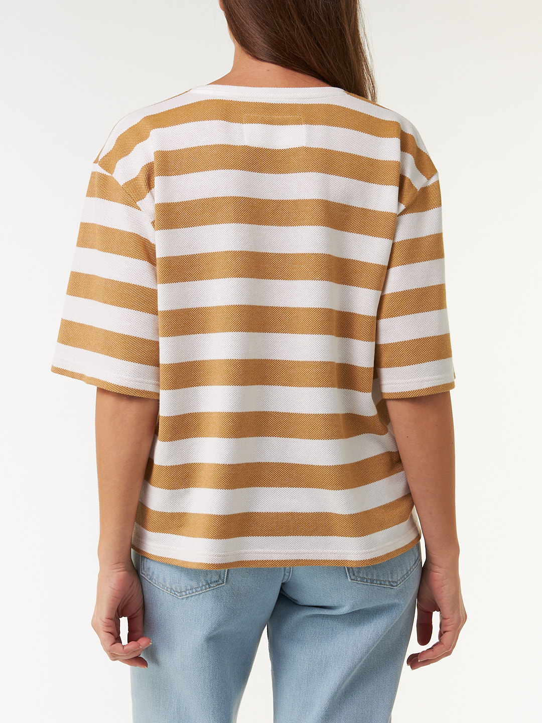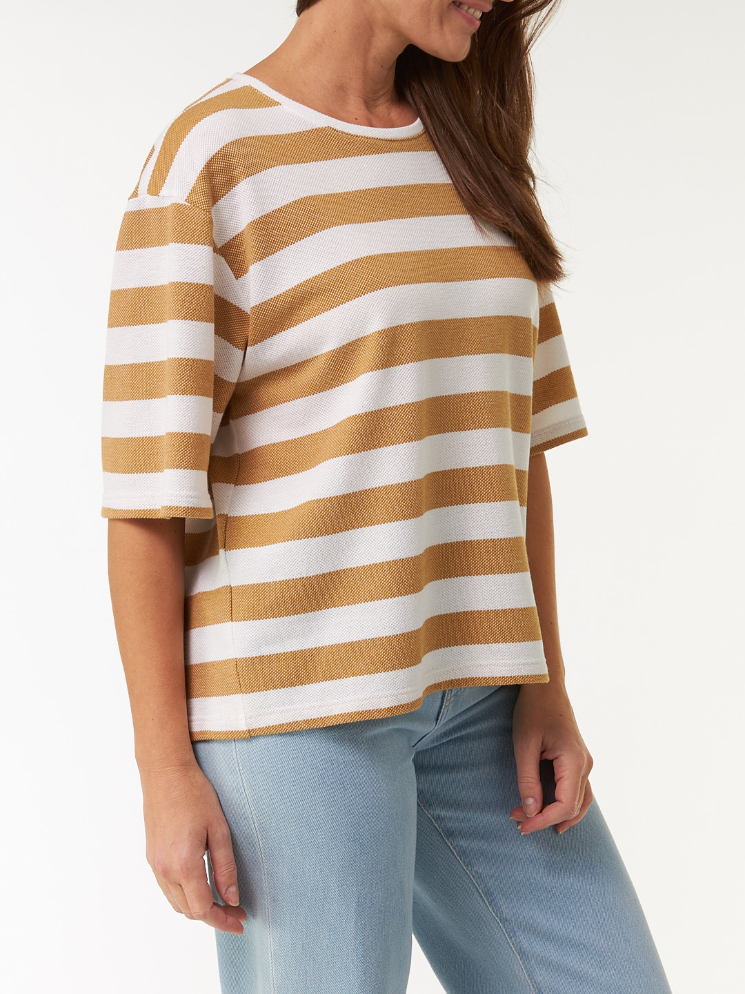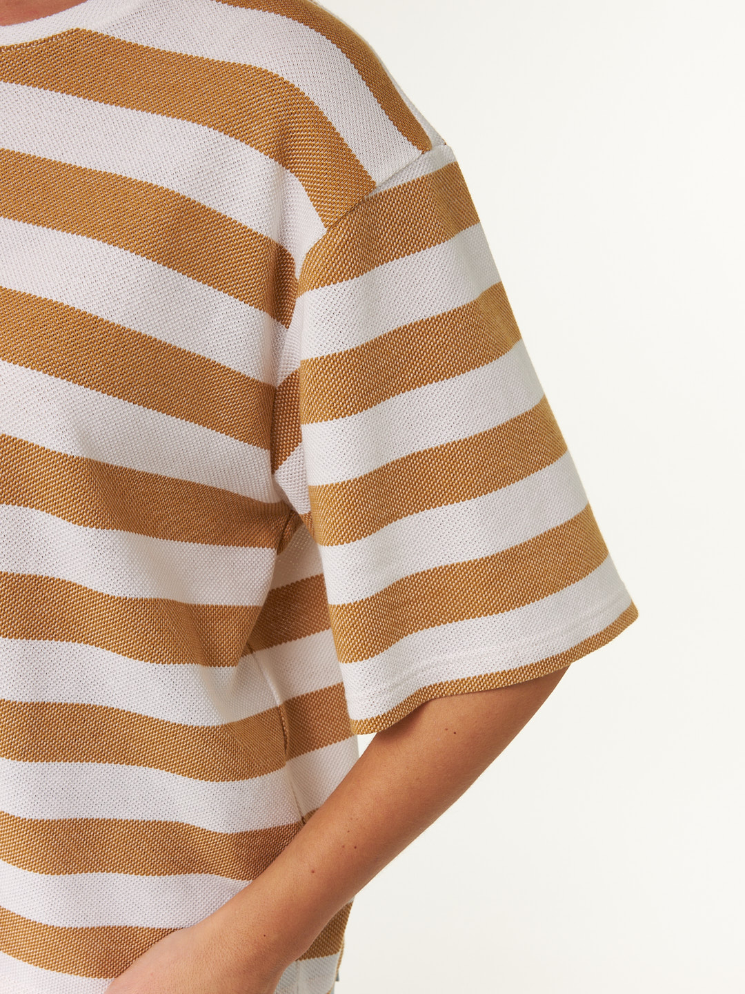 Kurzarmshirt aus Bio Baumwolle (rattan/offwhite ringel, S)