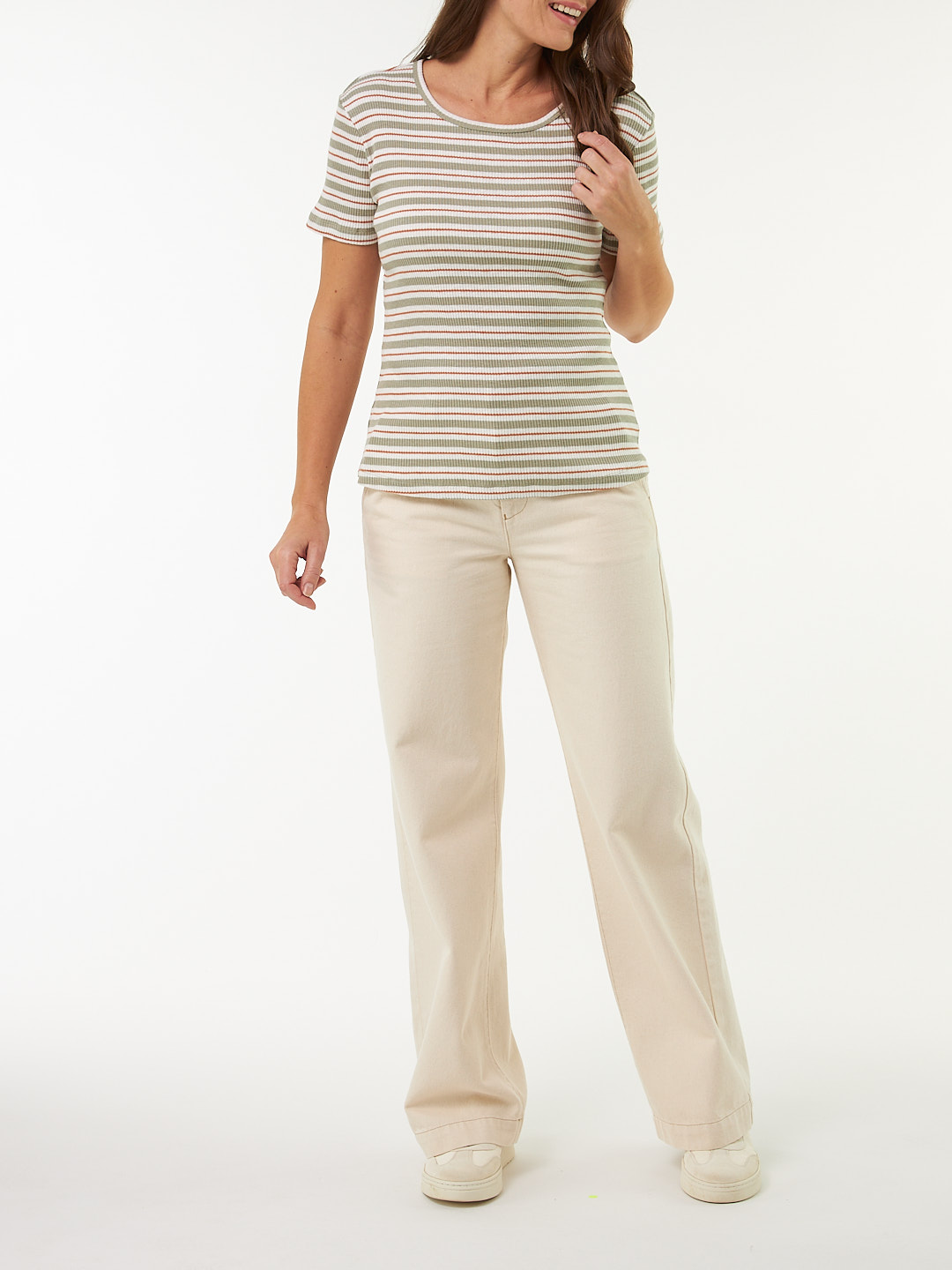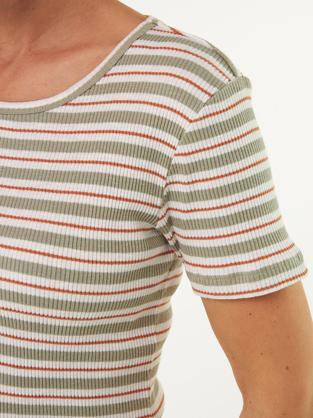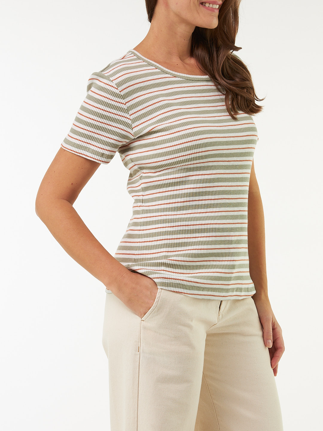 Kurzarmshirt Rippe aus Bio Baumwolle (seegras/offwhite ringel, S)