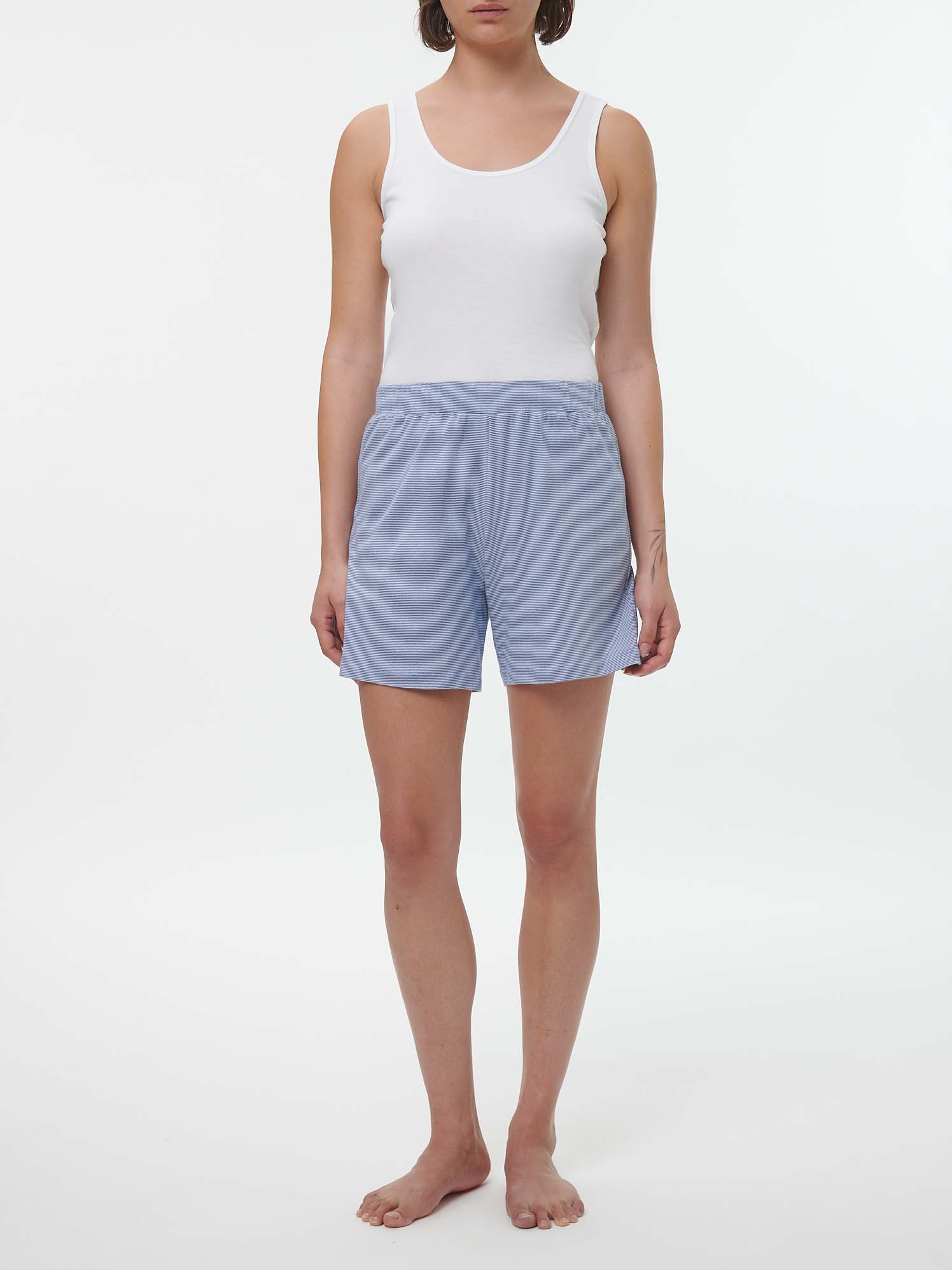 Kurze Schlafhose aus Bio-Baumwolle (meerblau/weiß ringel, S)