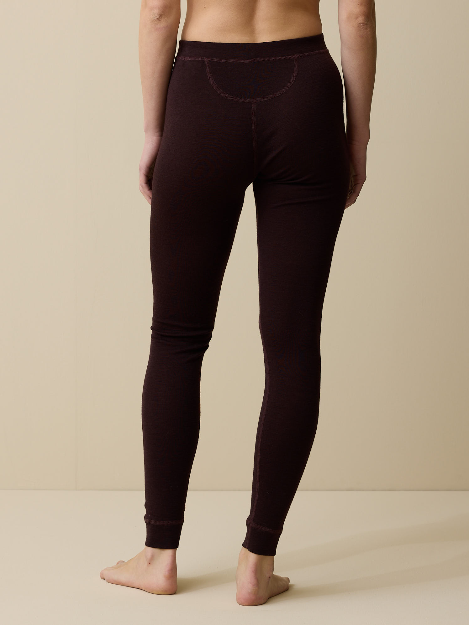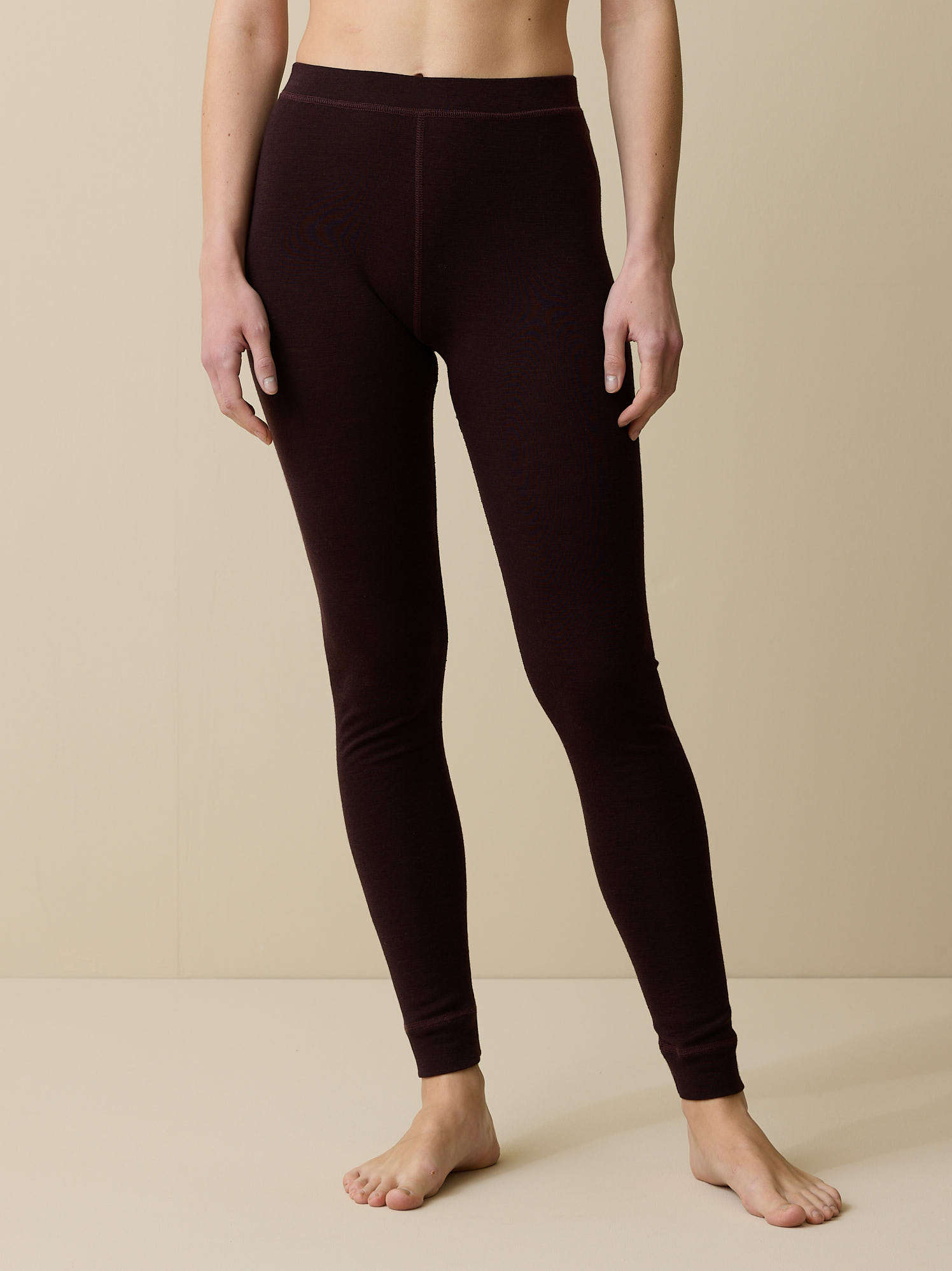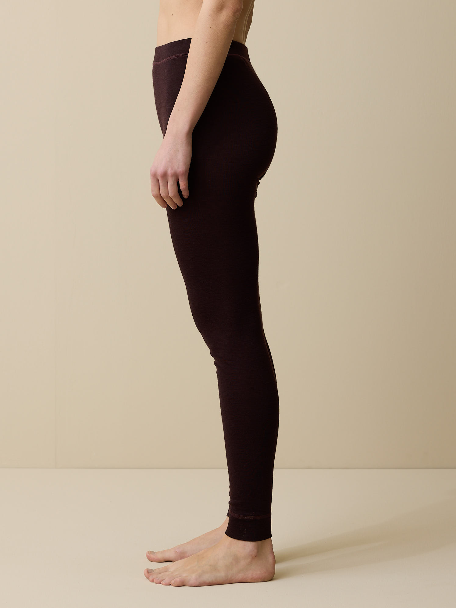 Leggings aus hochwertiger Merinowolle: weich, temperaturausgleichend, anschmiegsam. Das Naturmaterial ist trageangenehm, wärmend und sorgt für ein leichtes Gefühl auf der Haut. Komplementiert wird der schmale Schnitt mit einem Gummizug im Bund, einem eingearbeiteten Spiegel auf der Hinterhose sowie einem Bündchen am Saum. Das Modell ohne Seitennaht ist ein zeitloser Allrounder – für zuhause oder unterwegs.