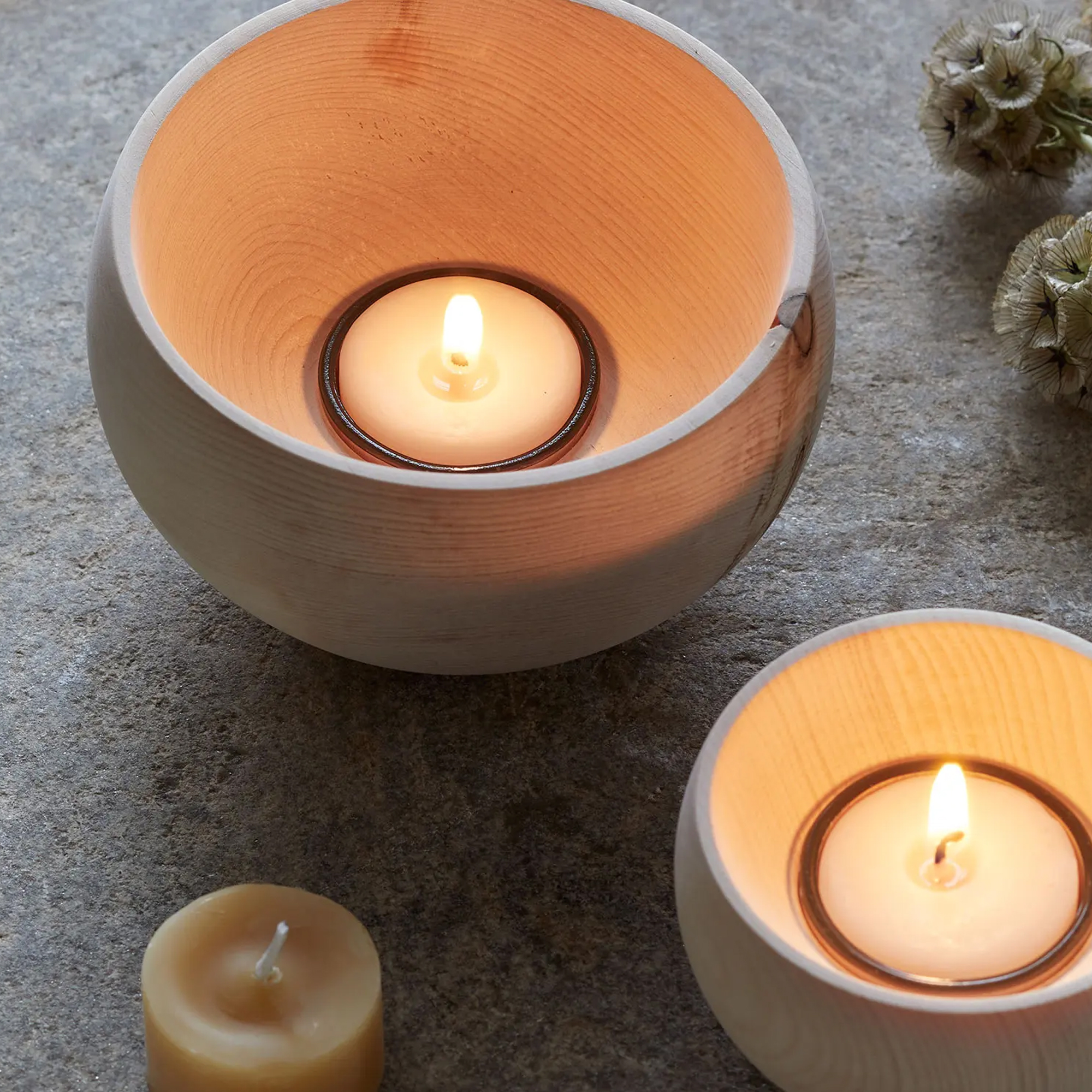 Schlichter und wunderschöner Kerzenhalter. Duftet toll nach Zirbe und gibt ein stimmungsvolles Licht ab.