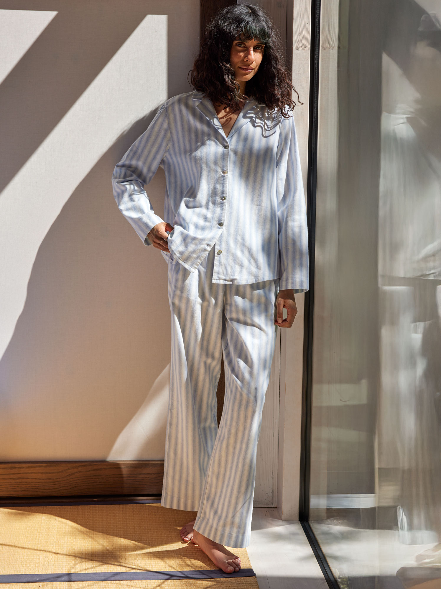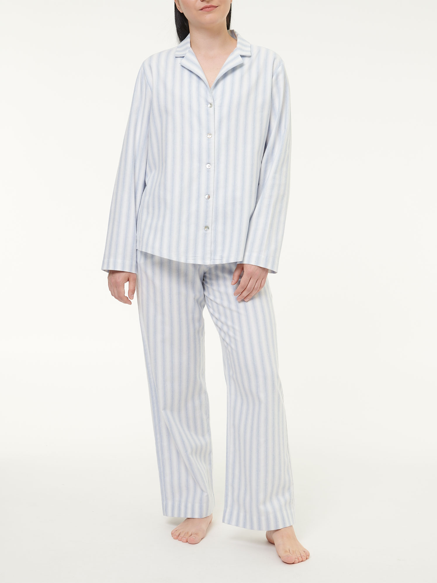 Nachthemd aus Bio-Baumwolle (streif weiss/blau, S)