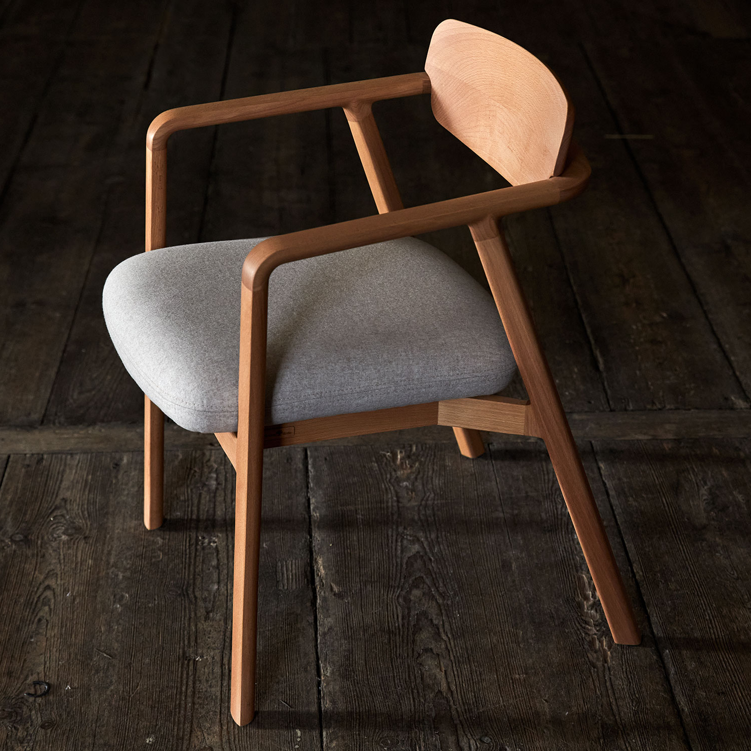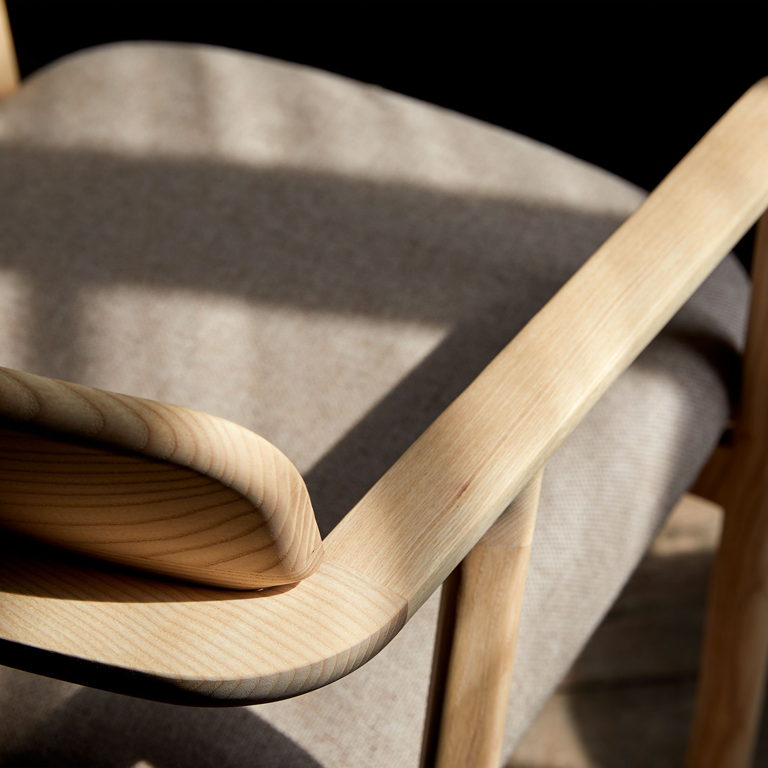 Die fest-elastische Sitzpolsterung aus Naturfasern sowie die körpergerecht geformte, gebogene Rückenlehne aus Massivholz gewähren aufrechtes, gleichzeitig bequemes Sitzen – auch über längere Zeit hinweg. Dabei erweisen sich die sanft gerundeten Armlehnen als wahre "Handschmeichler": ein Grund mehr, ein bisschen länger am Tisch sitzen zu bleiben.