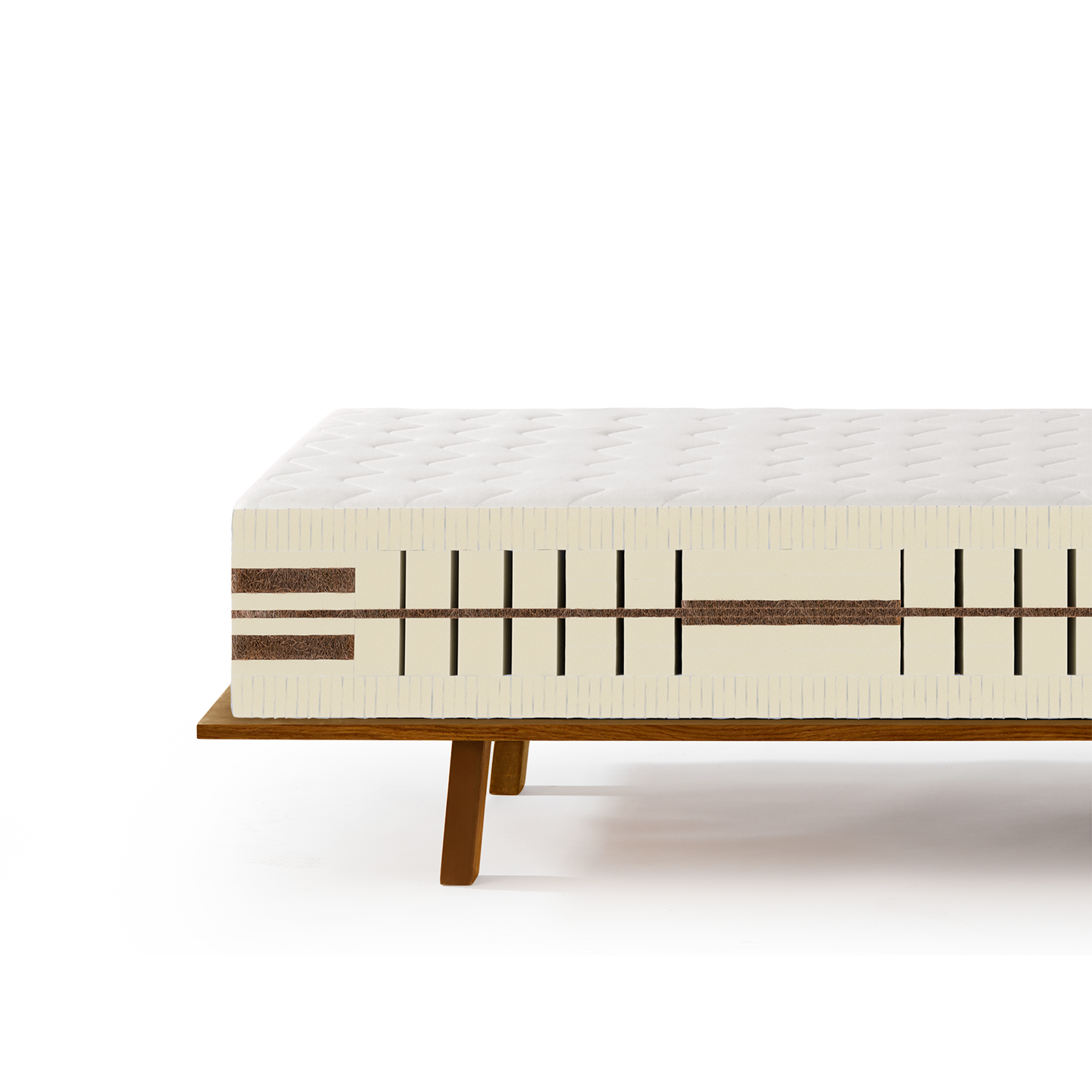 Bei einer Liegehöhe von 25 cm hat unser beliebtestes Matratzenmodell, die Wolke von Eden Premium, einen bis ins letzte Detail durchdachten Aufbau: Punktelastische Naturlatexkerne werden mit flächenelastischen Kokoslatexkernen kombiniert. Dies sorgt bei aller "Weichheit" für eine angenehme Stütze im Lendenwirbelbereich, sowie für die bei Matratzen mit dieser Höhe erforderliche Stabilität.