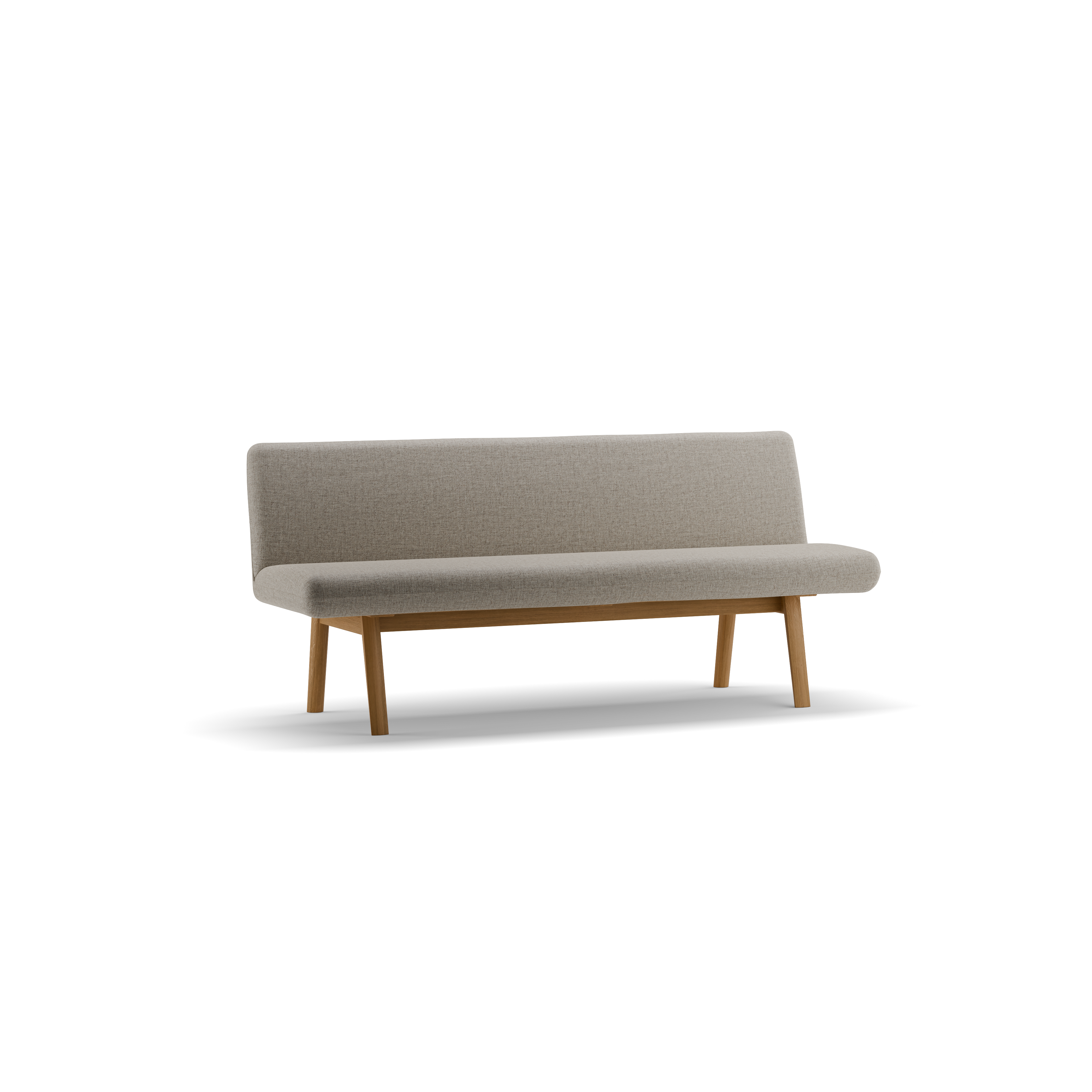 Getragen wird der Polsterteil von einem Fußgestell mit gerundeten Ecken und Kanten. Beide Teile sind von wieder lösbaren Holzsteckverbindungen fest zusammengehalten. Die nach innen versetzte Position der Bankbeine erleichtern die Bewegungsfreiheit der am Tisch Sitzenden. Schönes Designdetail: Die nach oben verlängerten Hinterbeine der Bank überlappen die Rückenlehne und stützen diese gleichsam. So macht Ketil auch freistehend gute Figur.