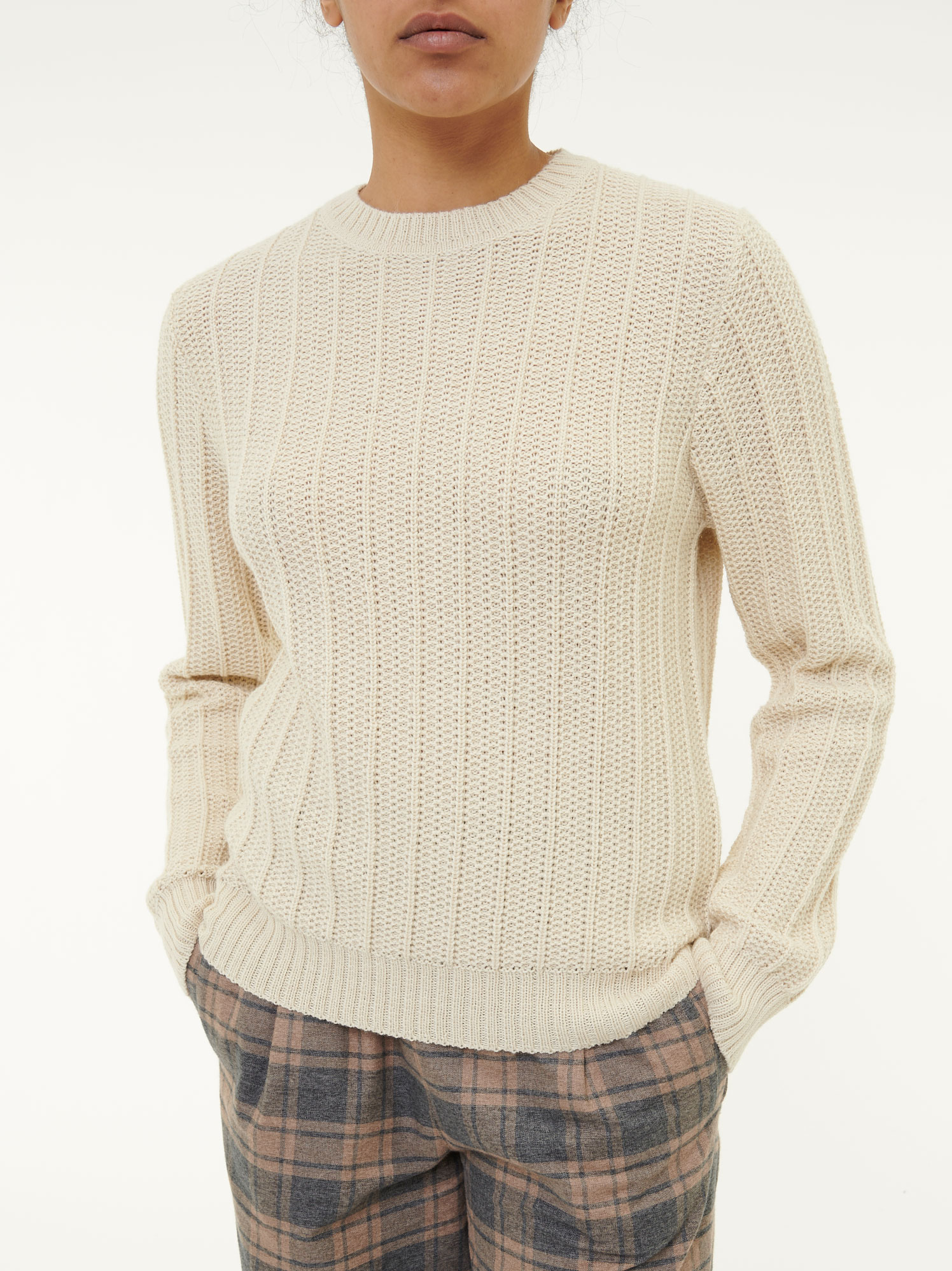 Strickpullover aus reiner, hochwertiger Alpakawolle in entspannter Oversize-Passform – ideal für kühle Tage und Übergangszeiten. Zudem besticht der feine Strukturstrick nicht nur mit einer spannenden Textur, sondern auch mit einer eleganten Ausstrahlung. Mit klassischem Rundhalsausschnitt, langen Ärmeln und fein gearbeiteten, breiten Strickbündchen an allen Abschlüssen.