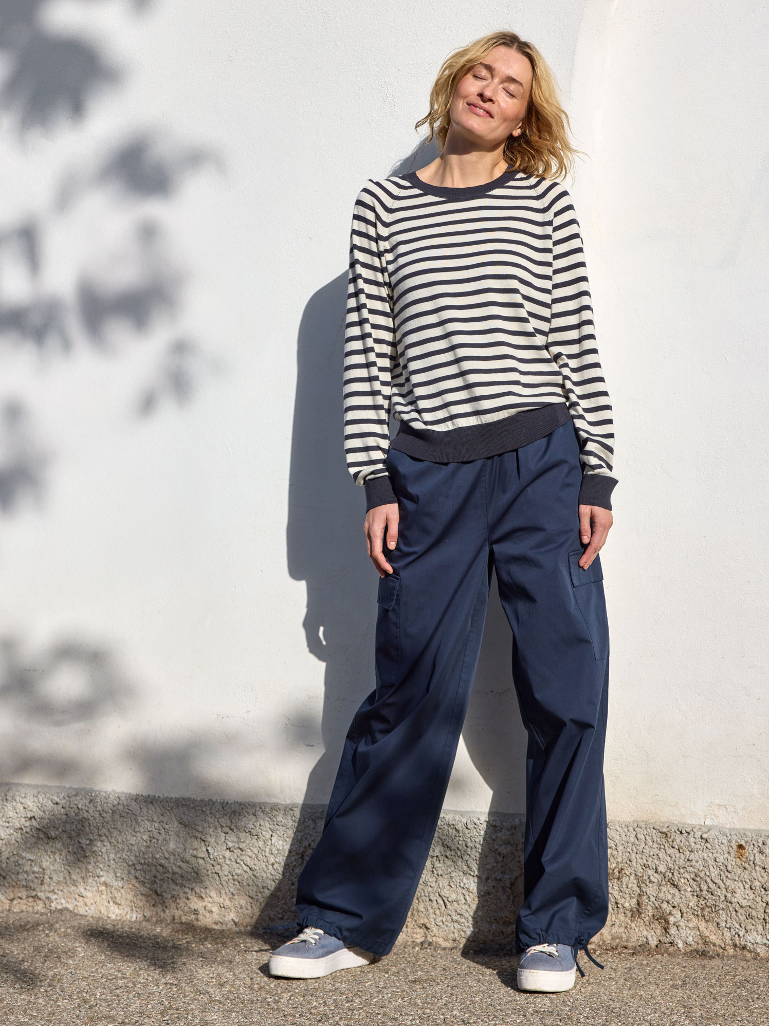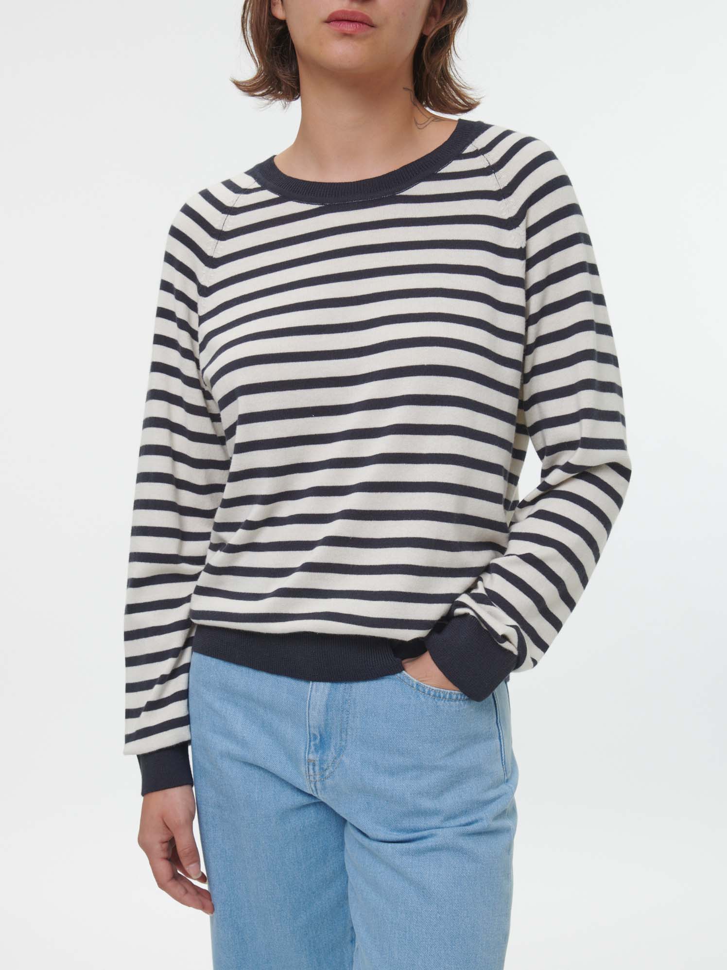 Pullover aus Bio-Baumwolle (navy/offwhite ringel, M)