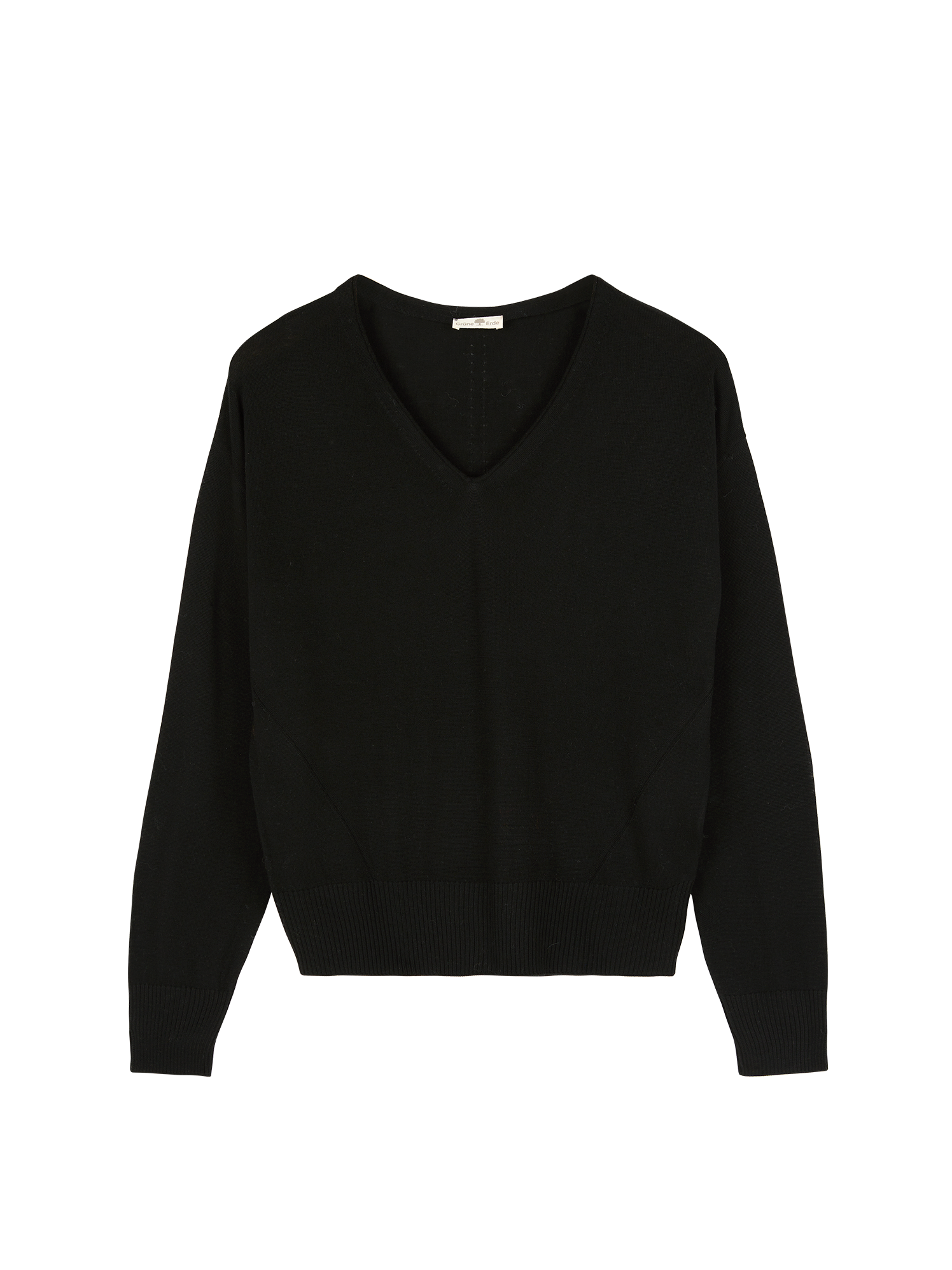 Gefälliger Pulli, der wegen des V-Ausschnittes und des breiten Bündchens auch mal bei großer Oberweite gut aussieht. Sehr charmant sind die Schlitze am Ärmelsaum. Der Pulli ist allerdings sehr dünn, so dass ich ihn noch nicht getragen habe. Ich hoffe, dass er mir im Übergang gute Dienste leisten wird und trotz der Zartheit lange hält.