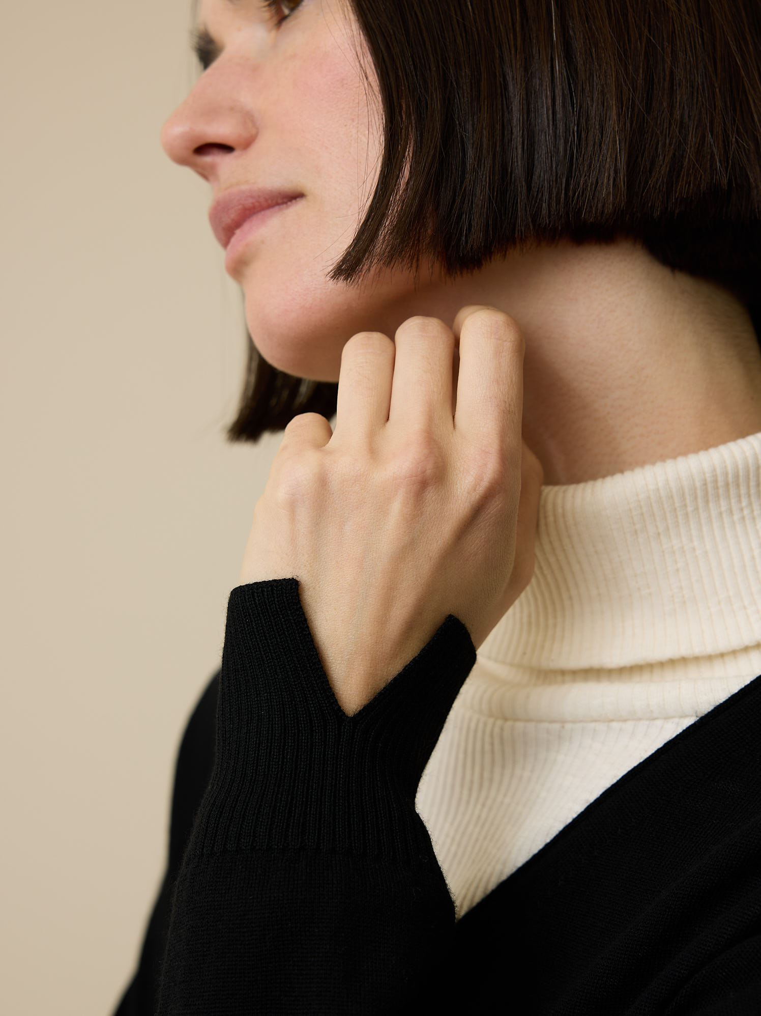 - hohes Rippbündchen am Saum und Ärmelsaum