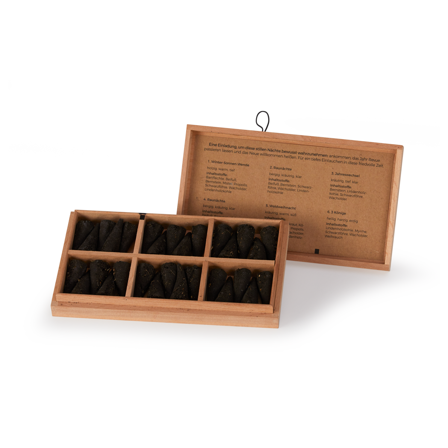 Räucherkegel im Holzkistchen "Heilige Zeiten"
