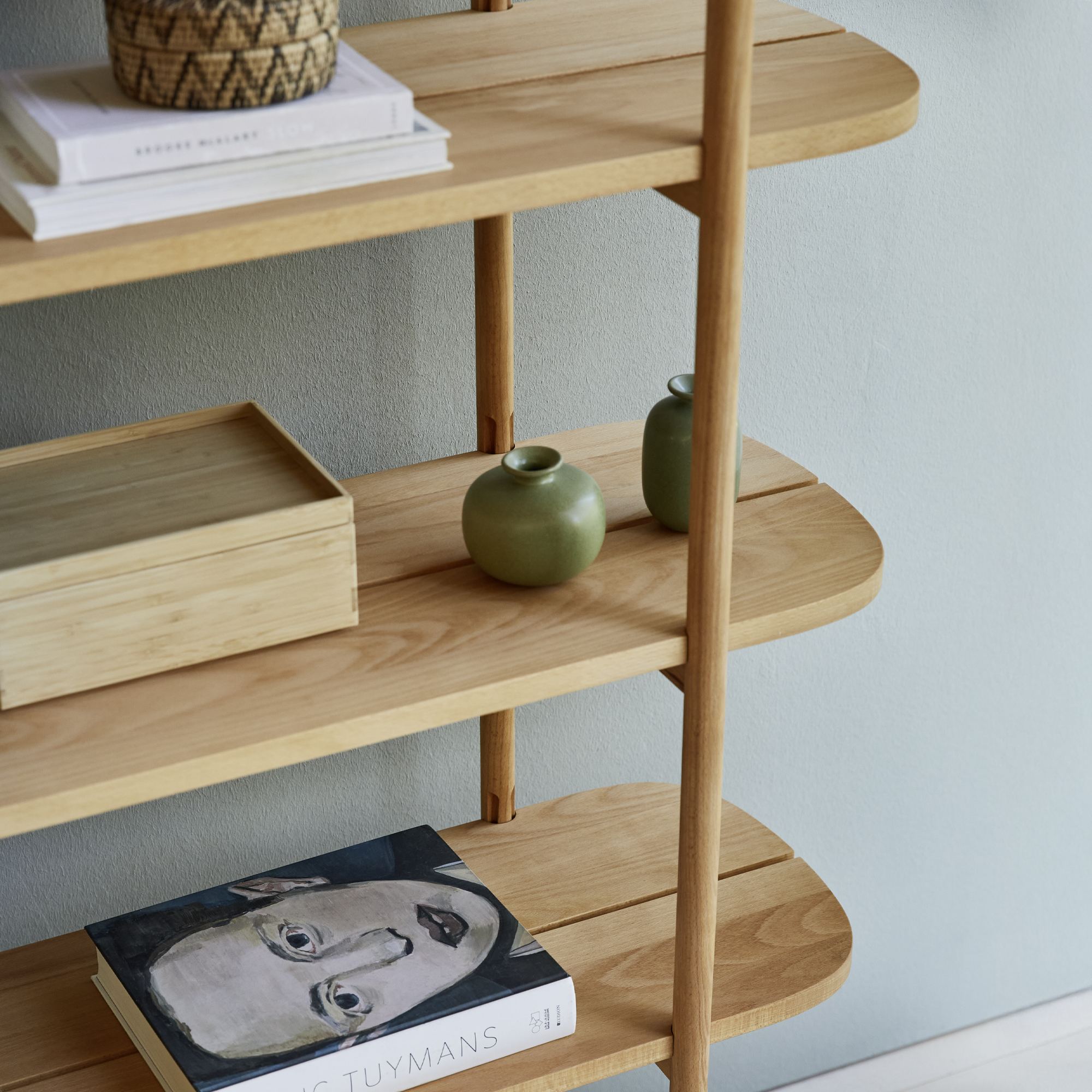 Als erstes Grüne Erde-Regal ist Tonda (auch) an den beiden Schmalseiten offen. Genau dort, an ihren Schmalseiten, zeigen die Fachböden die charakteristische "Tonda-Kurve": Diese sanft und in großem Radius gerundeten Ecken sind ein für alle Möbel der Serie Tonda typisches Design-Merkmal.