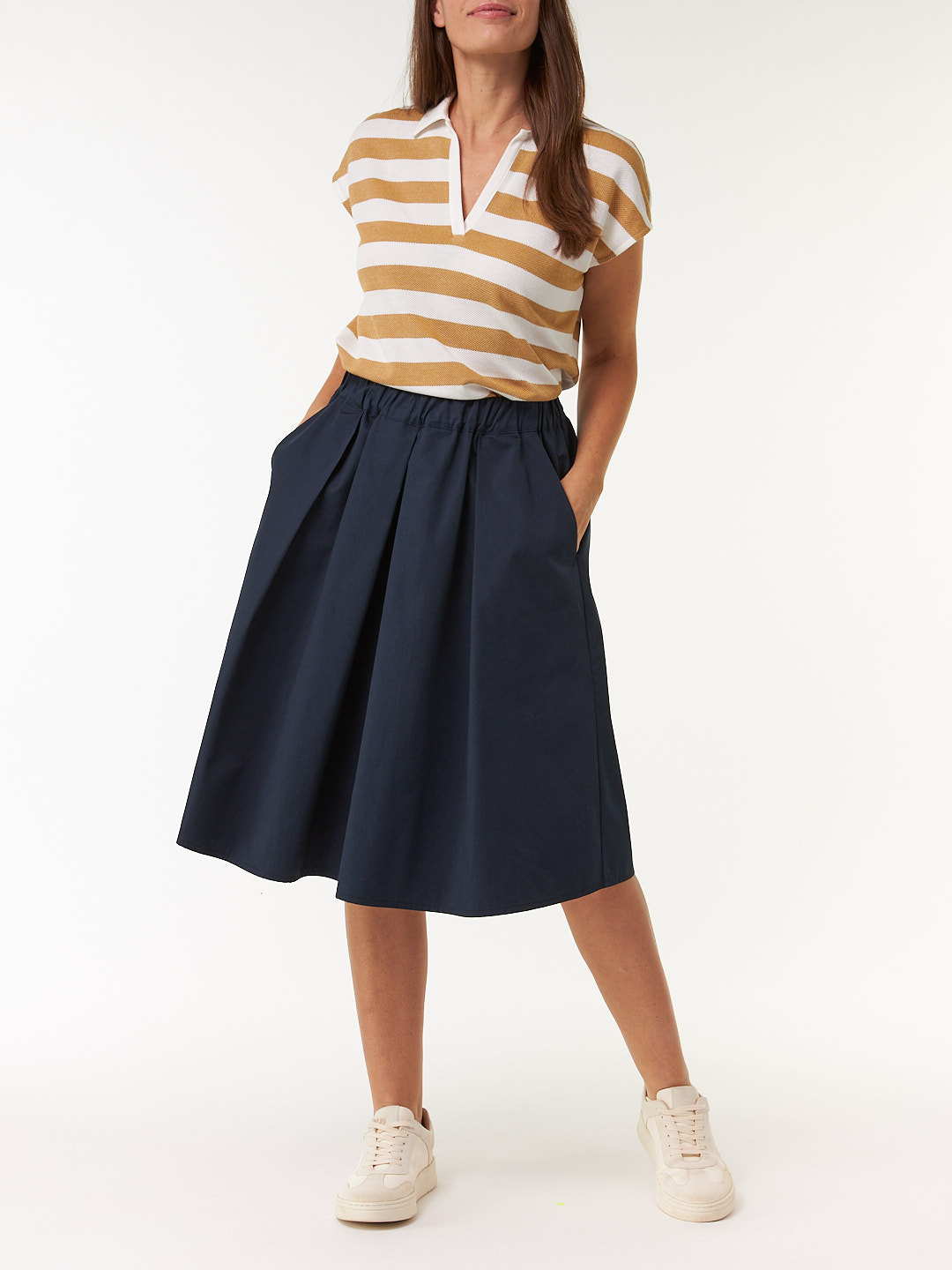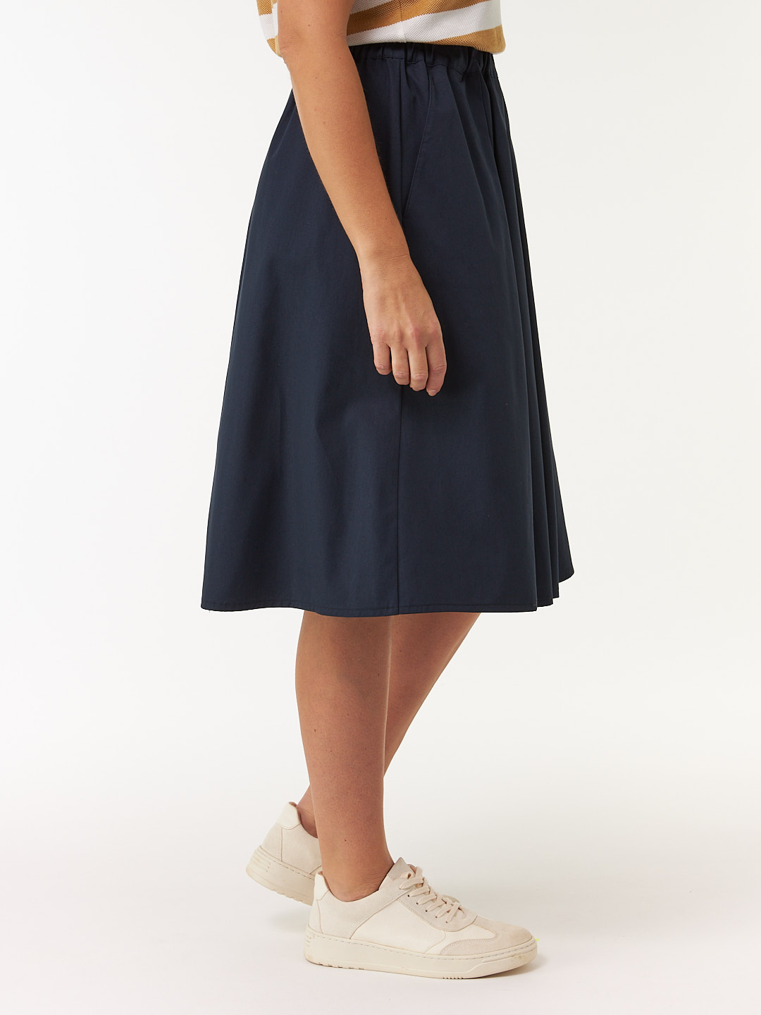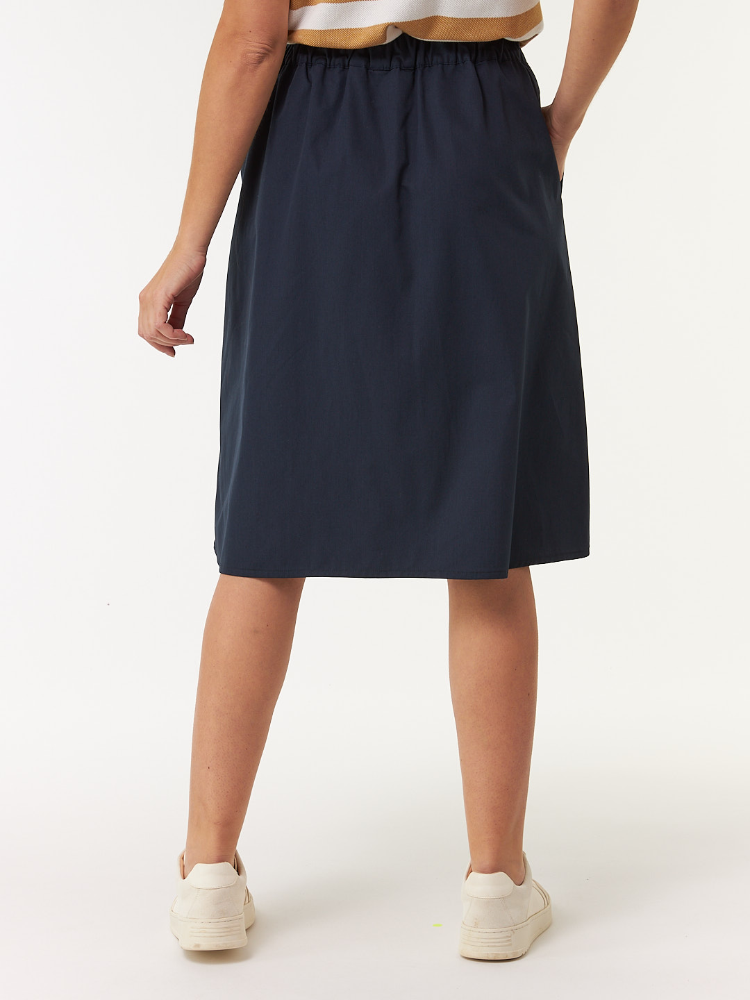 Rock in sommerlicher Popeline-Qualität: Das Modell mit Gummibund und ausgestellter Rocklänge mit sportiven Falten sorgt für einen entspannten Casual-Fit. Zwei seitliche Eingriffstaschen unterstreichen die praktische Seite, während die leichte Qualität für optimalen Tragekomfort an warmen Tagen sorgt.