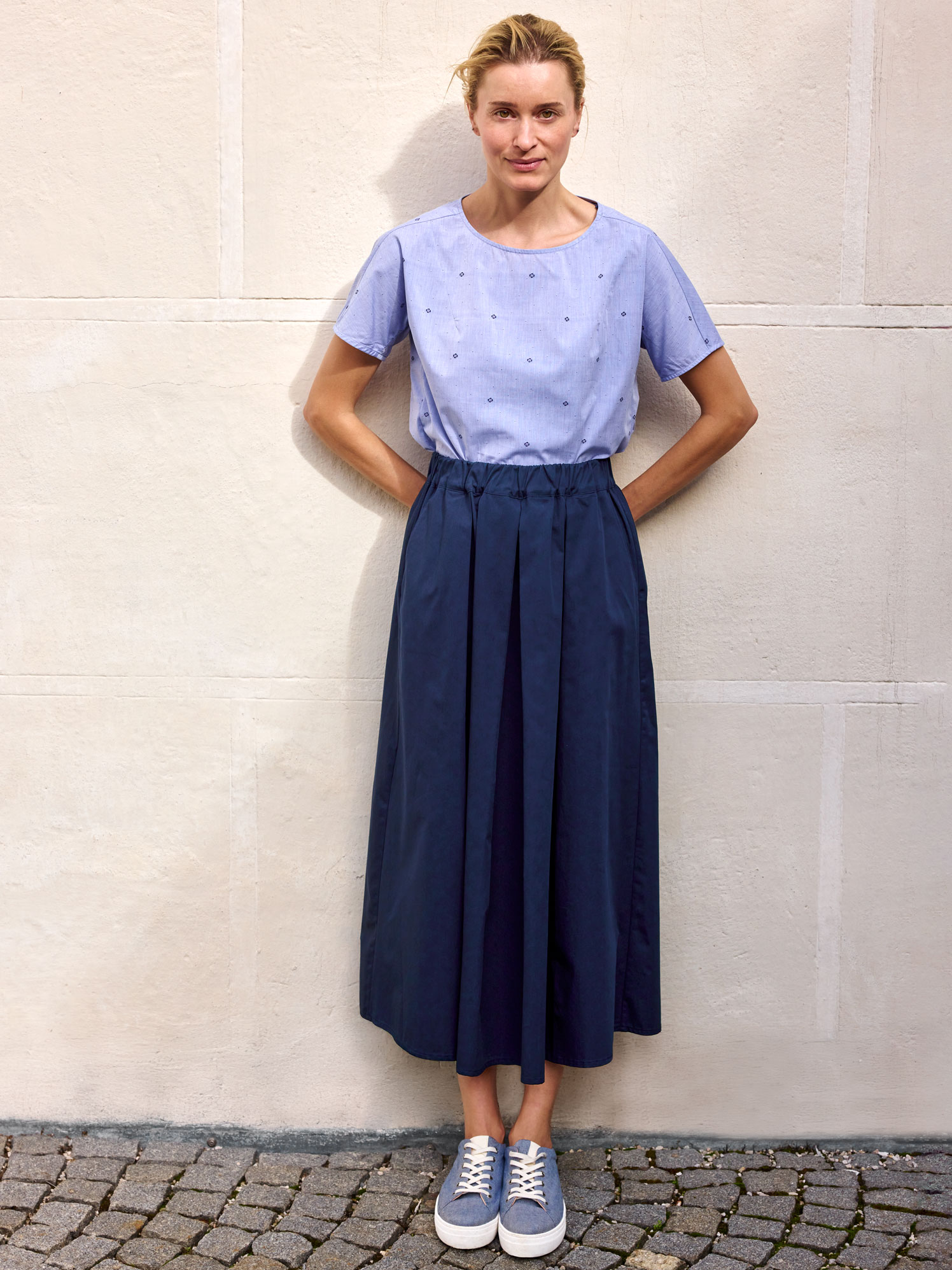 Toller, eleganter Schnitt und ein wunderbar tiefblauen Farbton. Sehr angenehm zu tragen, zu pflegen und zu bügeln. Qualität wie gewohnt perfekt. Ich liebe diesen Rock.