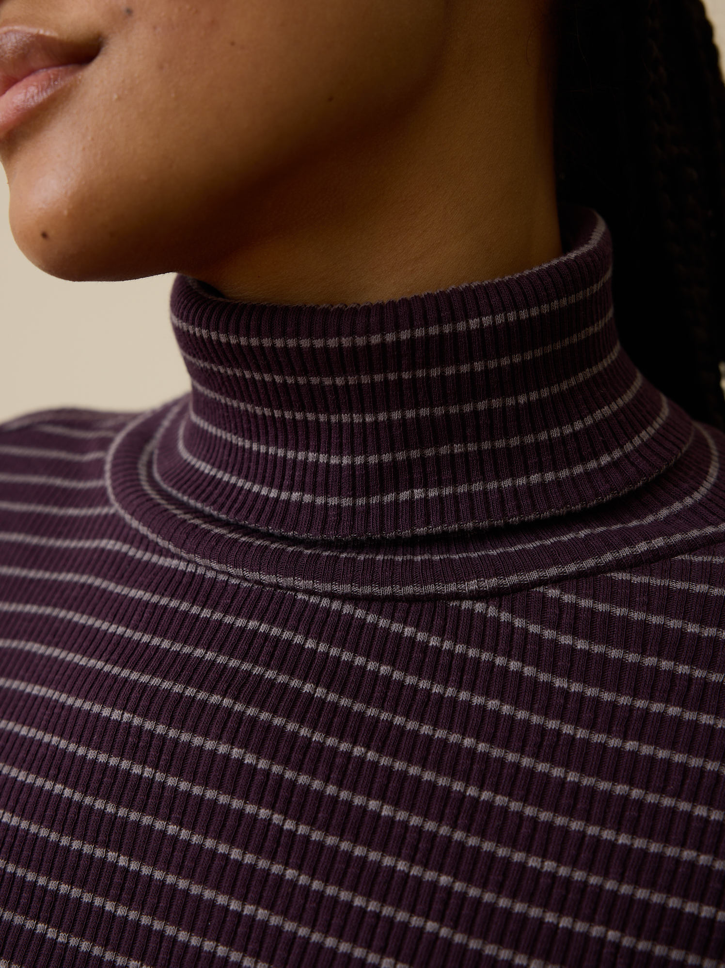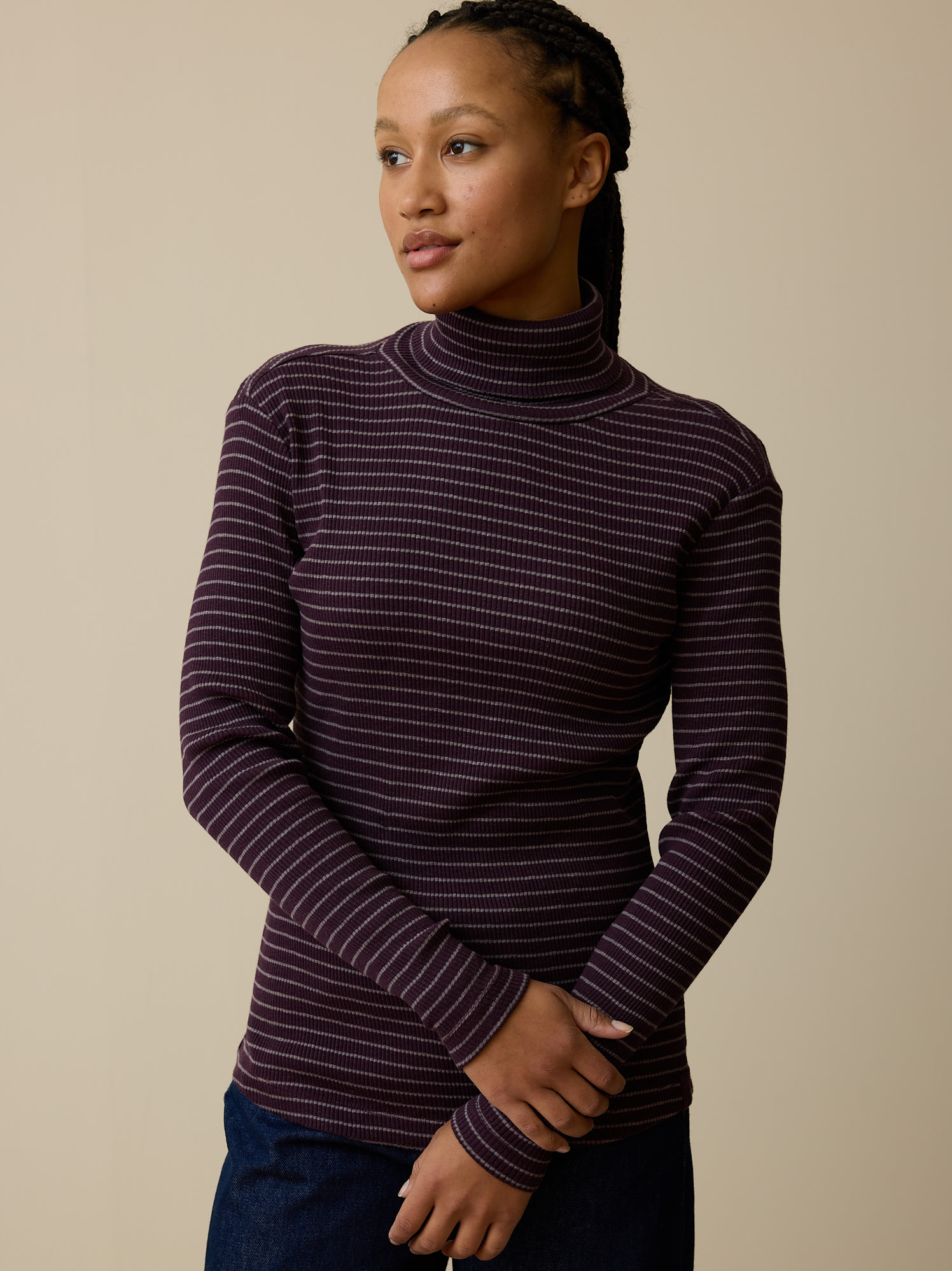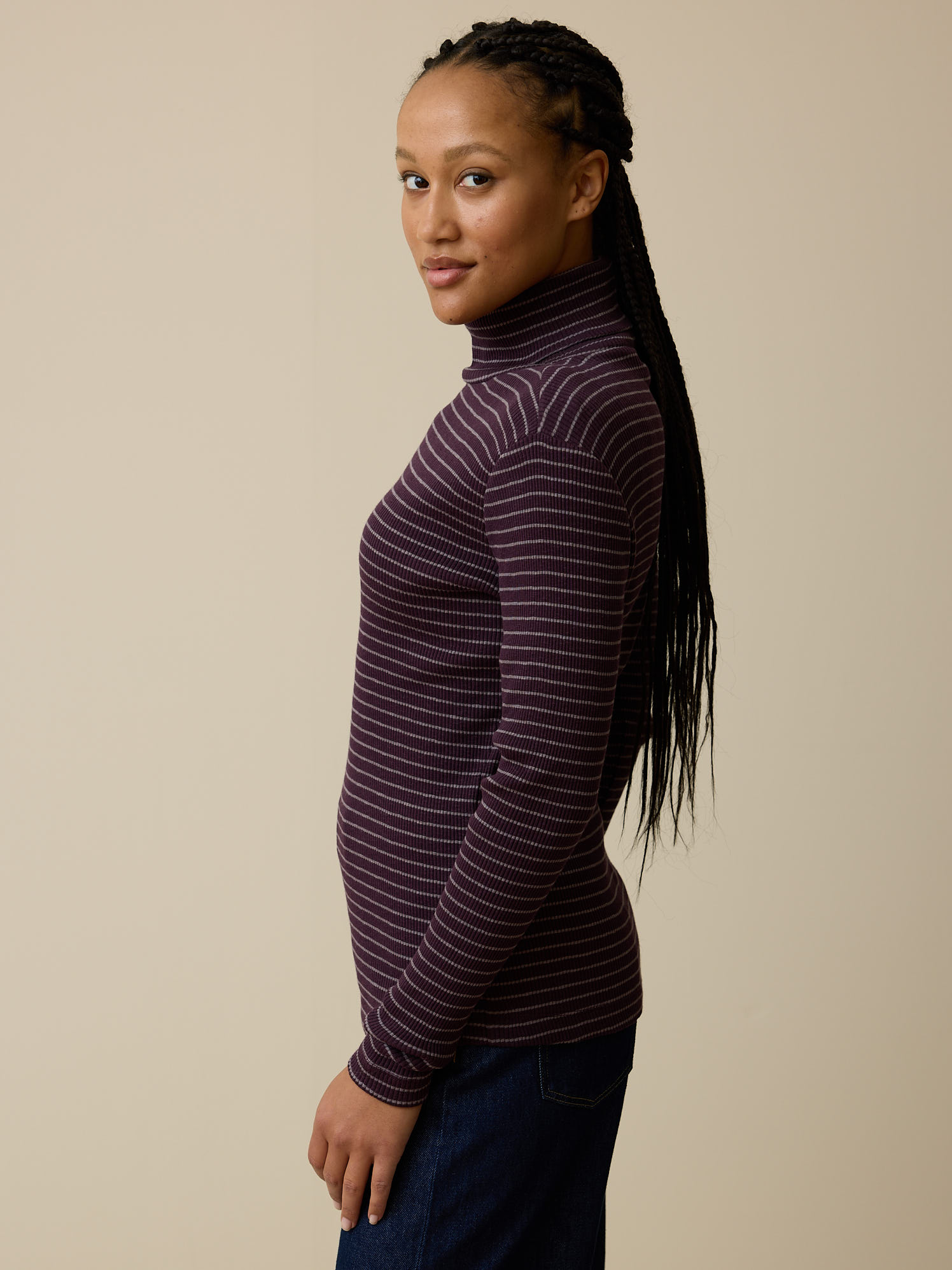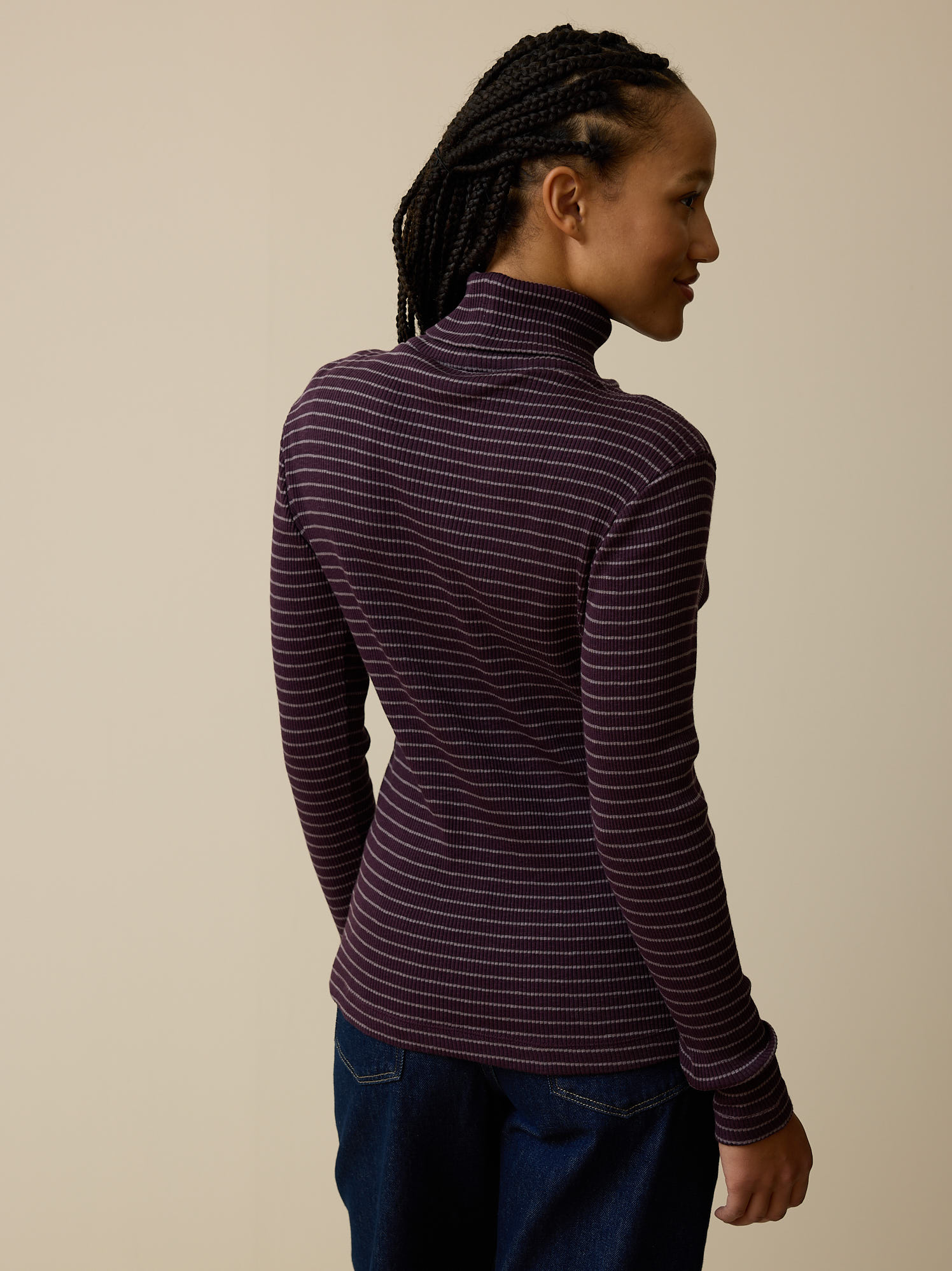 Rollkragenshirt aus Bio Baumwolle (ringel aubergine, XXS)