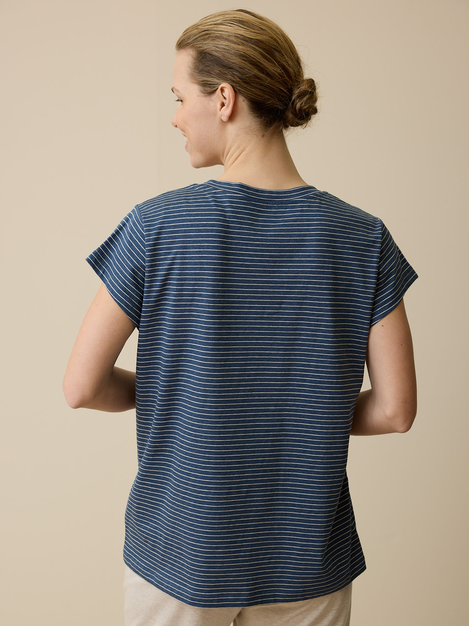 Schlafshirt aus Bio-Baumwolle (blau/natur melange ringel, XS)