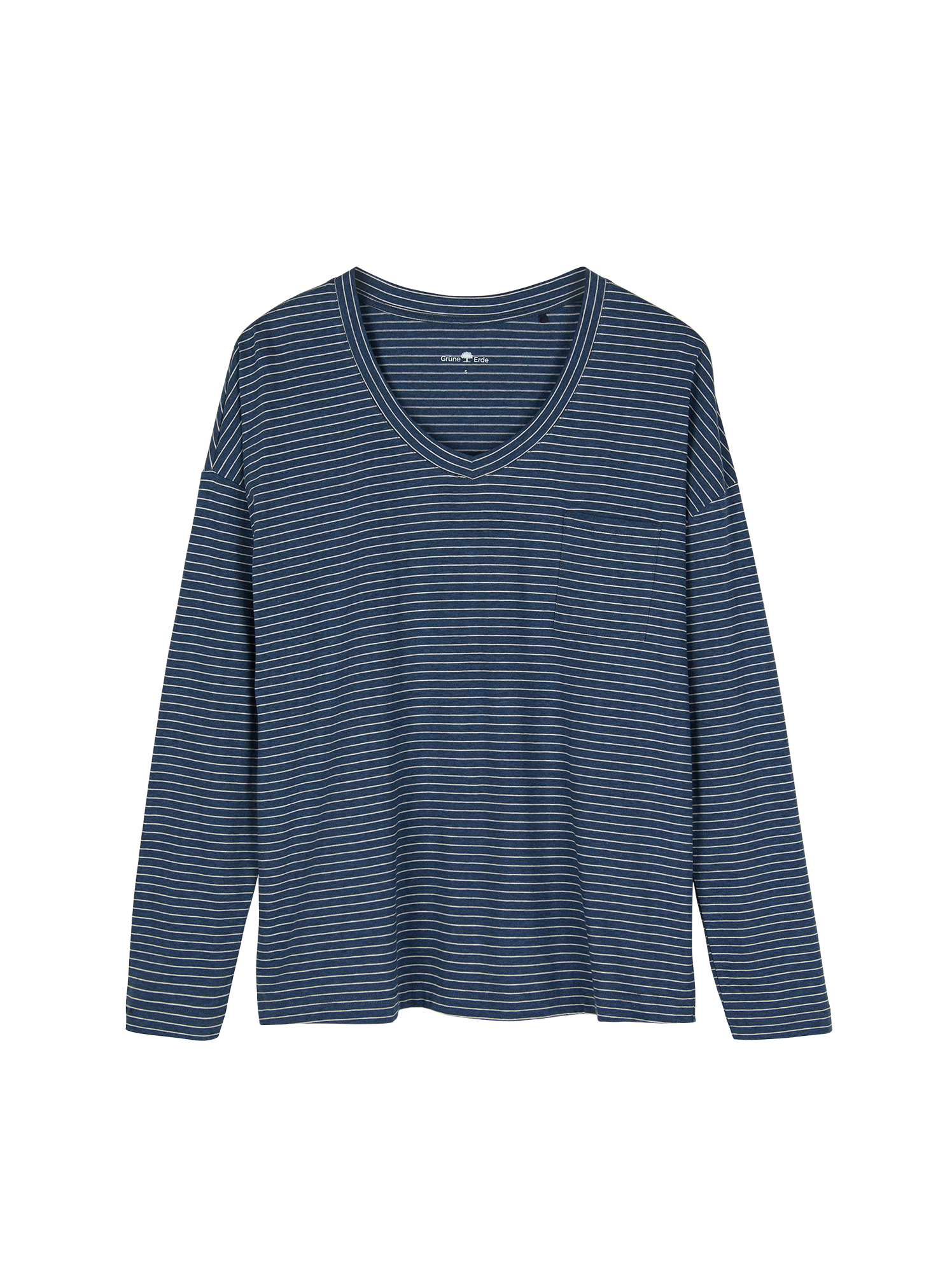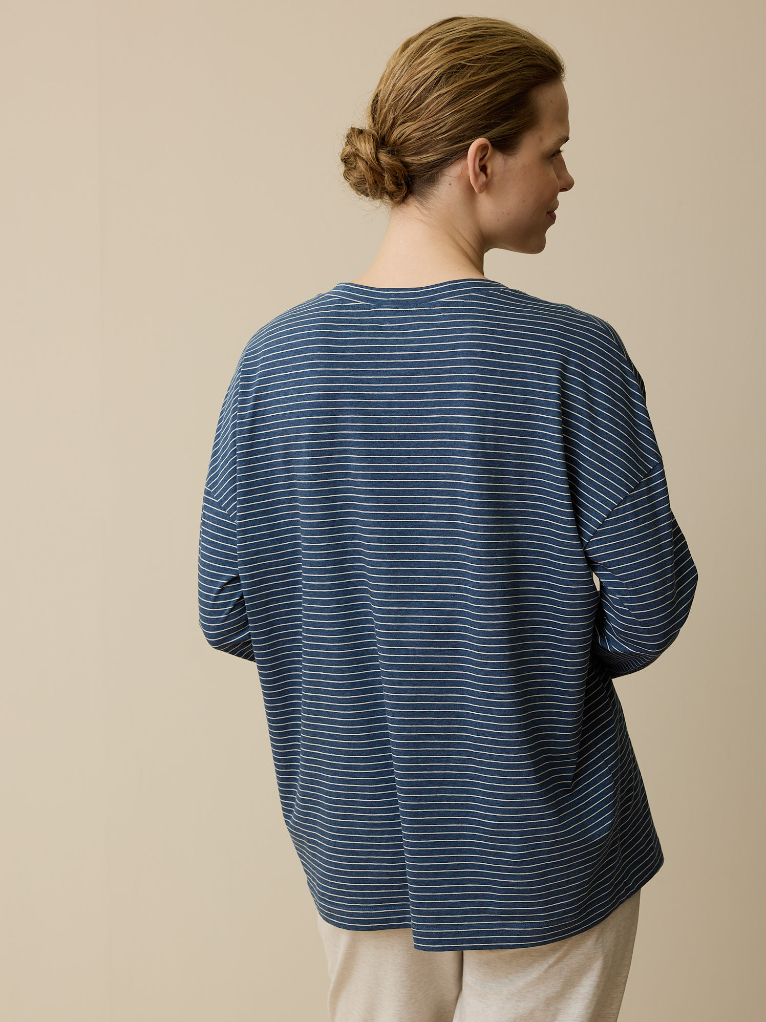 Schlafshirt aus Bio-Baumwolle (blau/natur melange ringel, M)