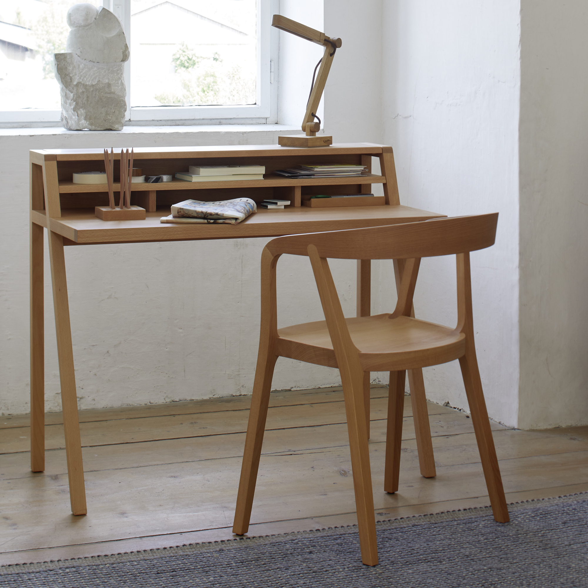 - zusätzliche Stellfläche für Büroleuchte, Bilderrahmen und Kalender