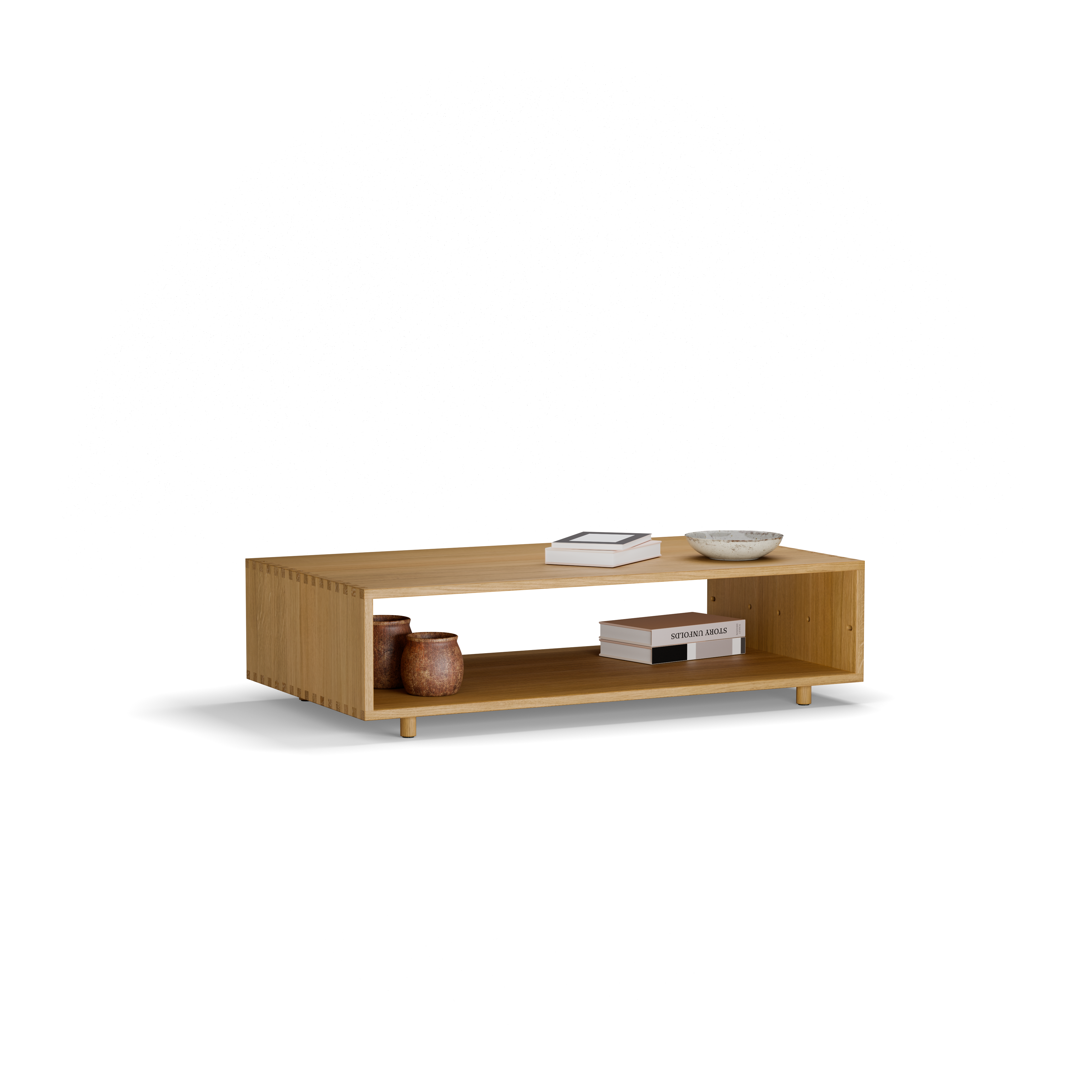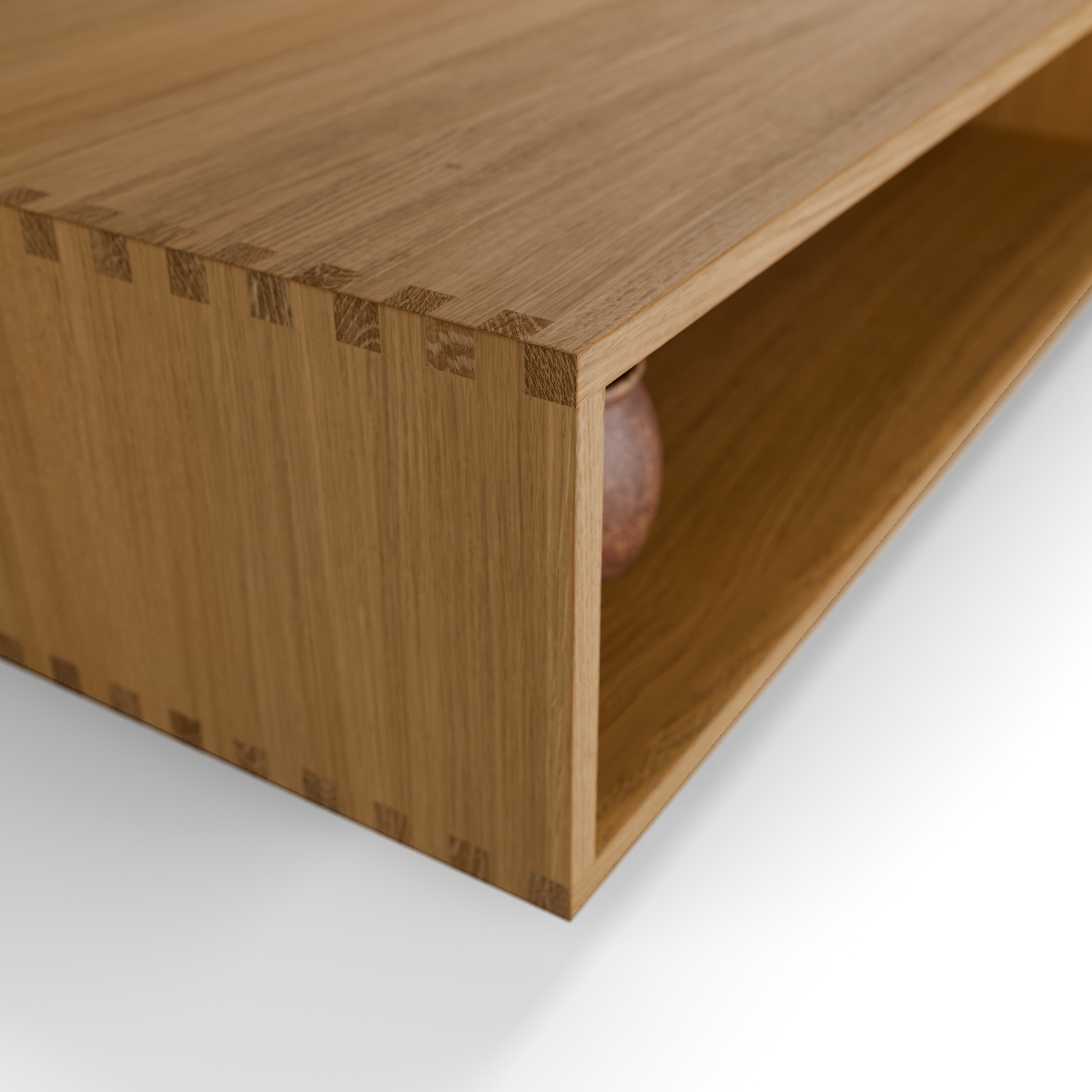 Jukai ist in Massivholz sehr stabil ausgeführt und mit optisch attraktiven, funktionell dauerhaften Fingerzinken als Eckverbindungen versehen. Aufgrund dieser Solidität kann der Tisch auch als informelle Sitzgelegenheit dienen.