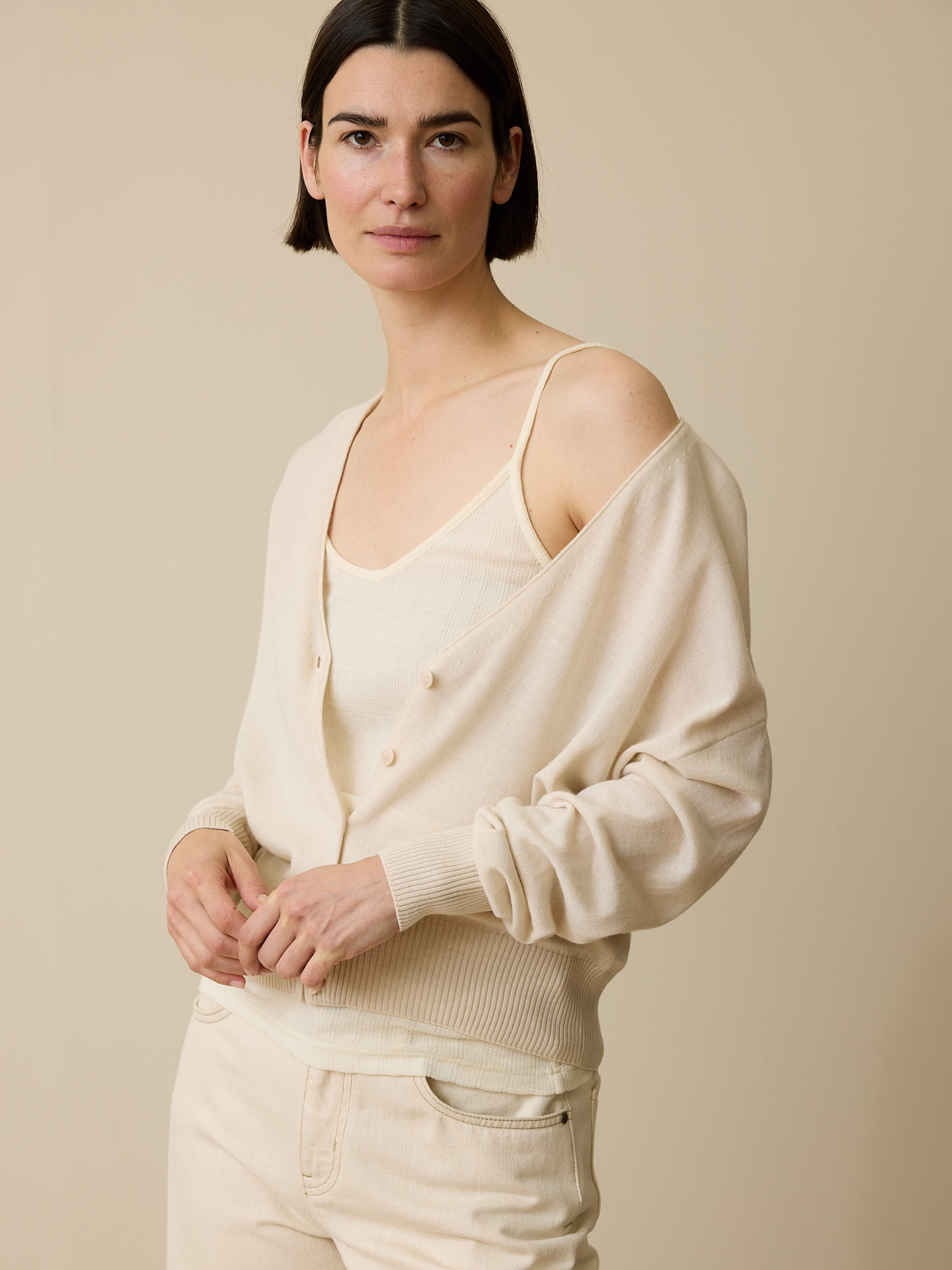 Dank des lockeren Schnitts kann man die Strickjacke problemlos über einem Langarmshirt tragen. Bleibt nach dem Waschen bestens in Form.