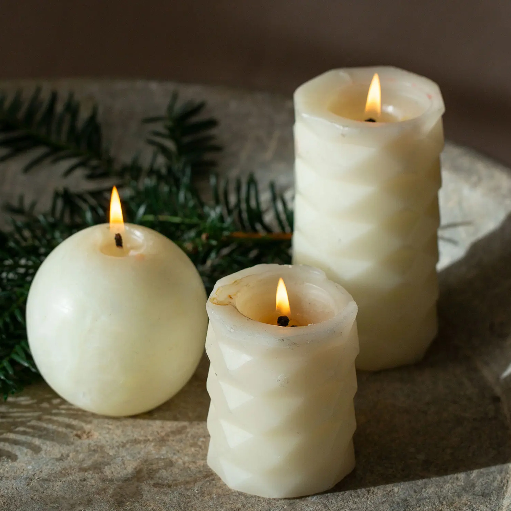 Stumpenkerze Relief aus Bienenwachs, natur